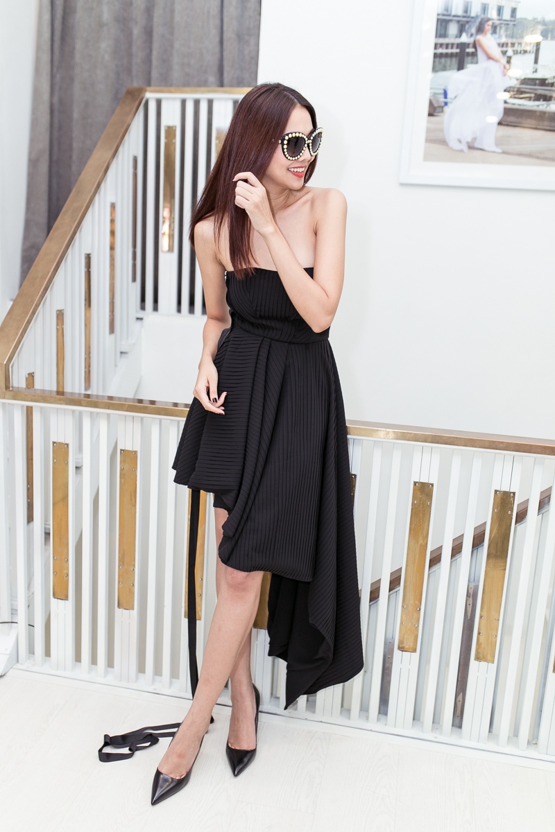 | Host Vietnam's Next Top Model cho biết, cô có thói quen sẽ diện trang phục của chính nhà thiết kế mà mình đến dự show. |