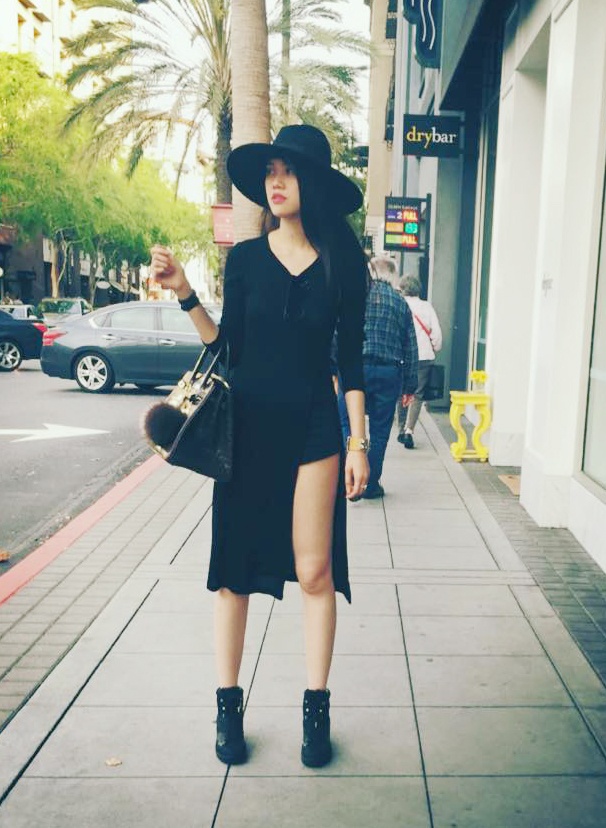 | Đối lập với hình ảnh năng động, nhiều màu sắc của Trà Ngọc Hằng, Thu Hằng chọn set đồ tông đen sang trọng. Bộ cánh có đường xẻ ngẫu hứng giúp nữ chủ nhân khoe chân thon dài. |