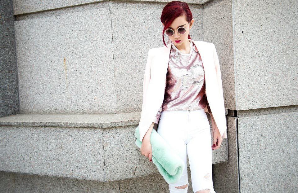 | Tương tự Thanh Trúc, MC Quỳnh Chi cũng chuộng mốt sắc trắng thanh lịch. Những ngày không có lịch tập vũ đạo, người đẹp mặc sành điệu xuống phố. |