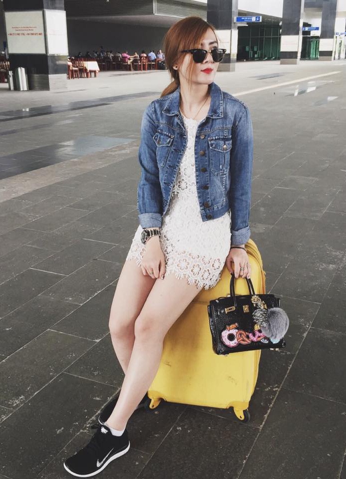 | Ca sĩ Yến Trang có chuyến du lịch cùng chị gái vào cuối tuần. Nữ ca sĩ diện váy ren điệu đàng, mix cá tính cùng áo denim và giày bata hiện đại. |