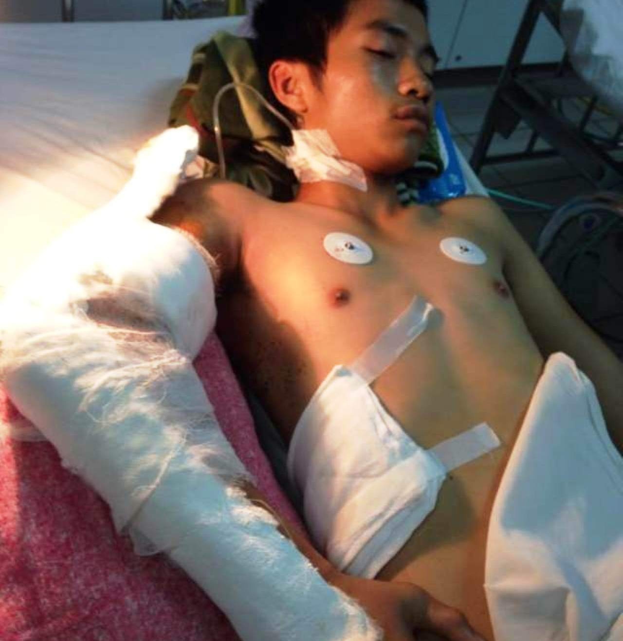 Trần Tuấn Anh bị chém sát vai, đứt lìa cánh tay phải và 1 nhát chém rất sâu giữa bụng.