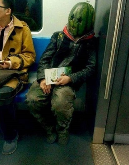 Chàng trai đội chiếc mũ dưa hấu này như một chiếc mặt nạ và di chuyển trên chuyến tàu điện ngầm 1,2,5 Bắc Kinh Metro khiến cho nhiều hành khách thực sự sợ hãi. Nhiều người đã chụp ảnh hình ảnh quái dị đó và đăng tải trên Internet, khi hình ảnh này được lan truyền, cư dân mạng gọi chàng trai này là "anh trai dưa hấu".
