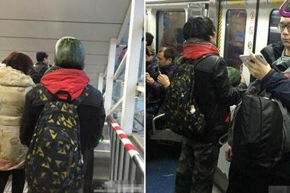 Mới đây, những hình ảnh kỳ lạ về một chàng trai đội nguyên một quả dưa hấu rỗng ruột lên đầu của mình để đi tàu điện ngầm lan truyền nhanh chóng trên mạng xã hội Trung Quốc.