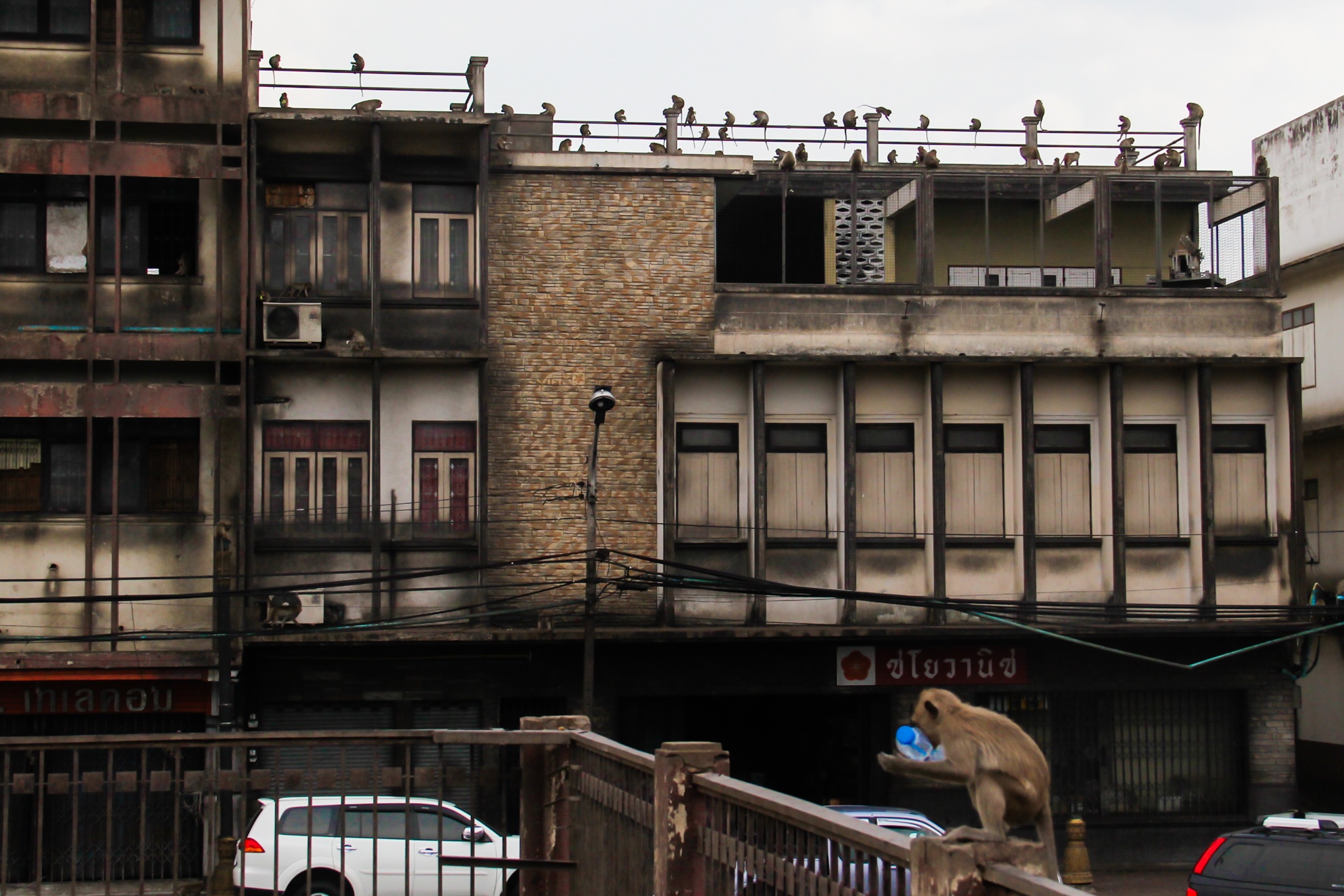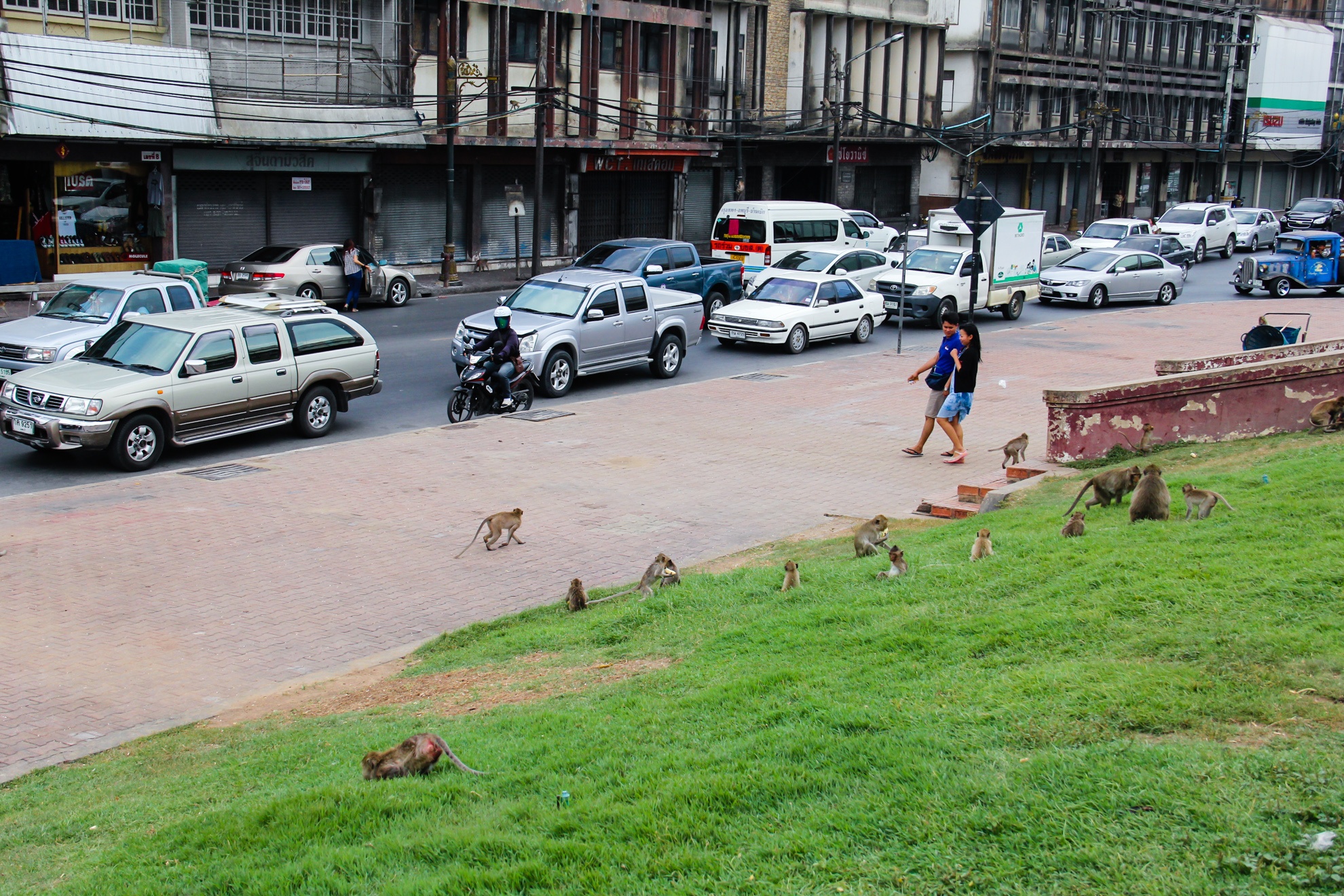 | Khỉ tập trung nhiều nhất ở chùa khỉ và đền Pra Prang Sam Yot, cùng như các tòa nhà xung quanh khu vực này. |