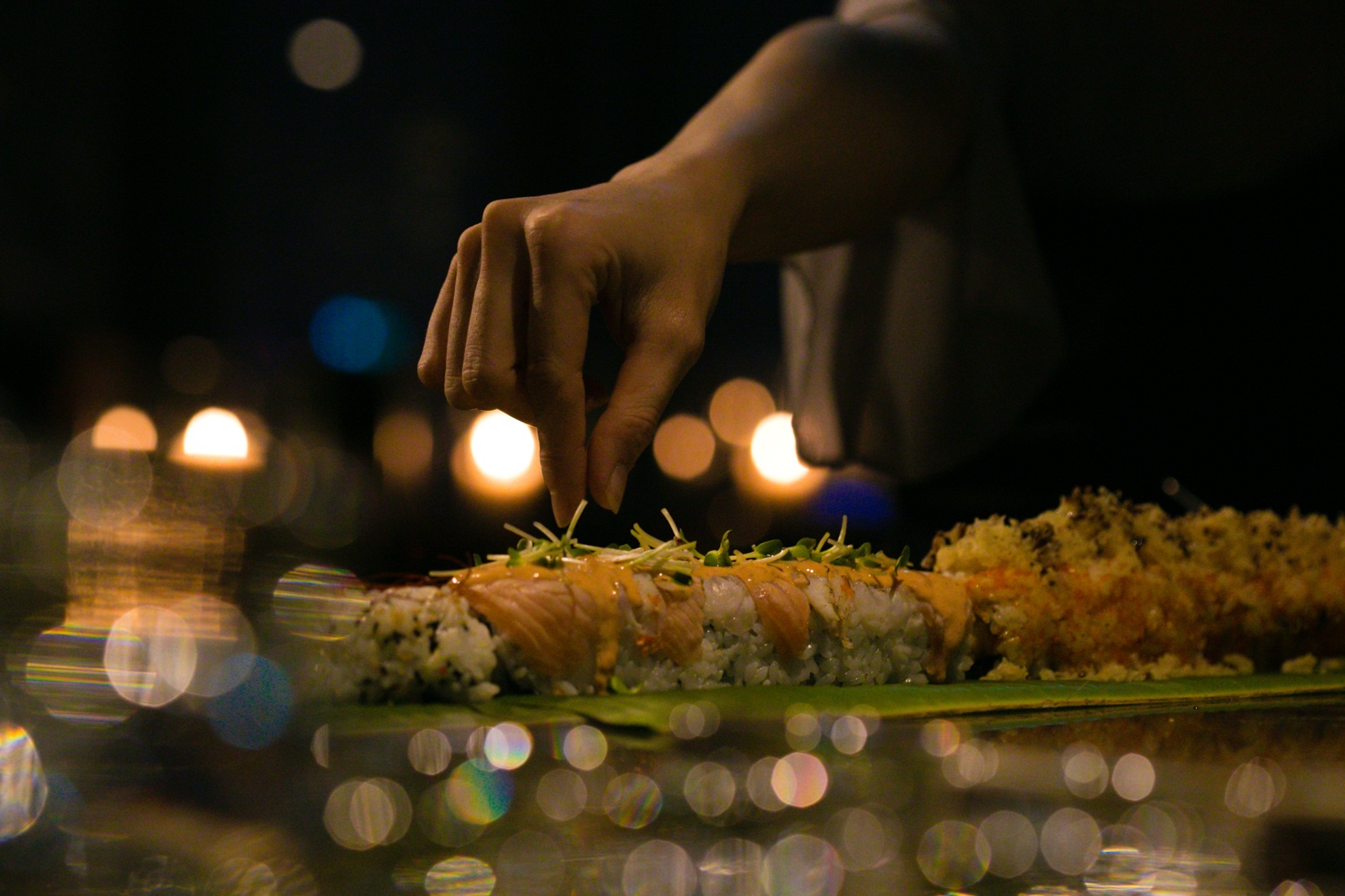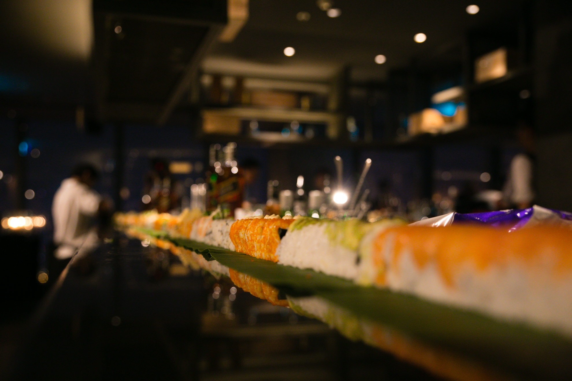 Sau khi trưng bày, thanh sushi trên được phục vụ miễn phí cho khách dùng bữa tối tại nhà hàng. |