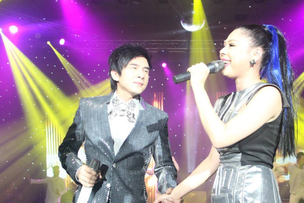 Kết hợp ăn ý cùng Đàm Vĩnh Hưng trên sân khấu.