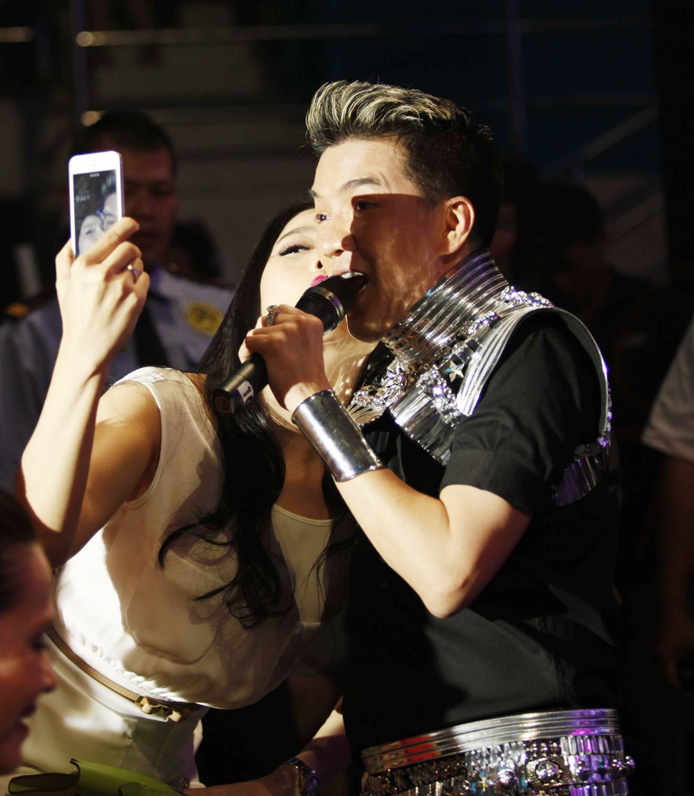 | Lệ Quyên hôn và chụp ảnh cùng Đàm Vĩnh Hưng. |