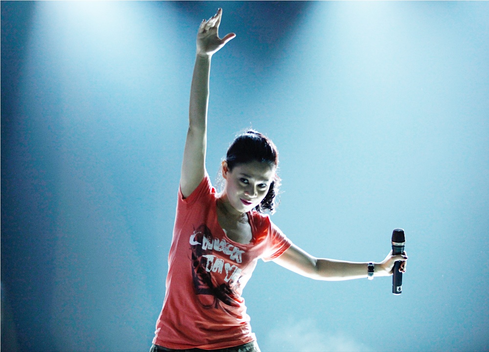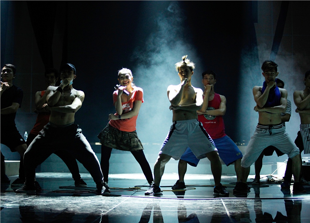 Thanh Thảo và các vũ công tập duyệt một tiết mục sôi động.