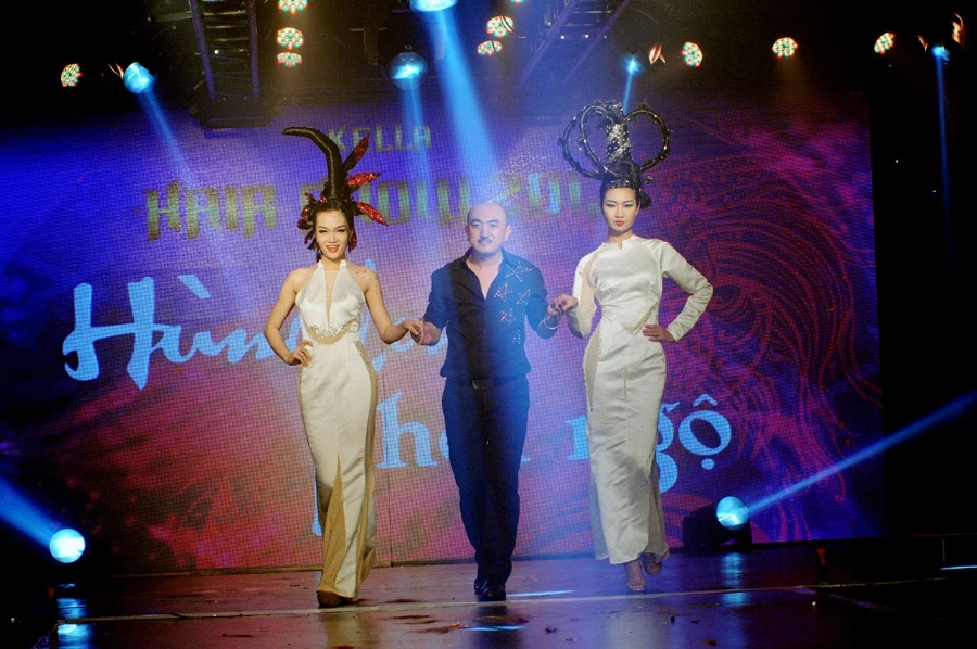 | Nhà tạo mẫu tóc - Giám đốc trung tâm dạy nghề Thanh Kim trình diễn tạo kiểu tóc uốn dập ngay trên sân khấu. |