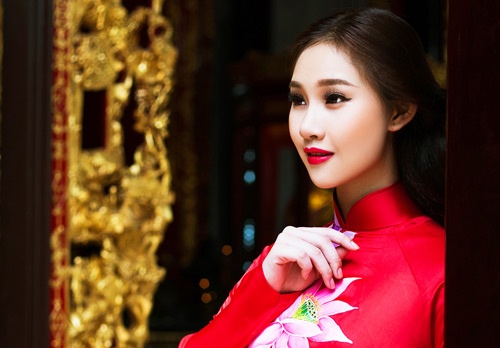 | Thanh Trúc đẹp dịu dàng trong tà áo dài truyền thống. |