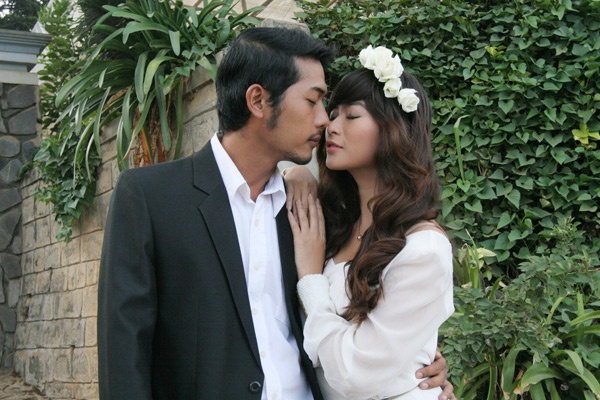 | Diễn viên trẻ Đoàn Thành Tài có cảnh diễn khá nóng với đàn chị Cát Tường trong phim. |