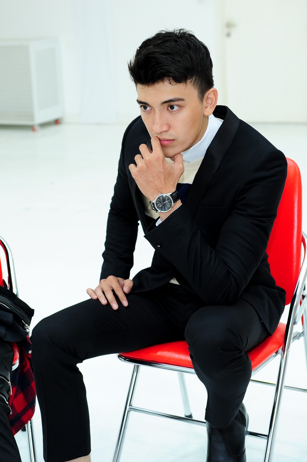 | Hồng Đức - chàng sinh viên ngành Địa chất tập trung lắng nghe những chia sẻ của Quán quân Vietnam's Next Top Model mùa đầu. |