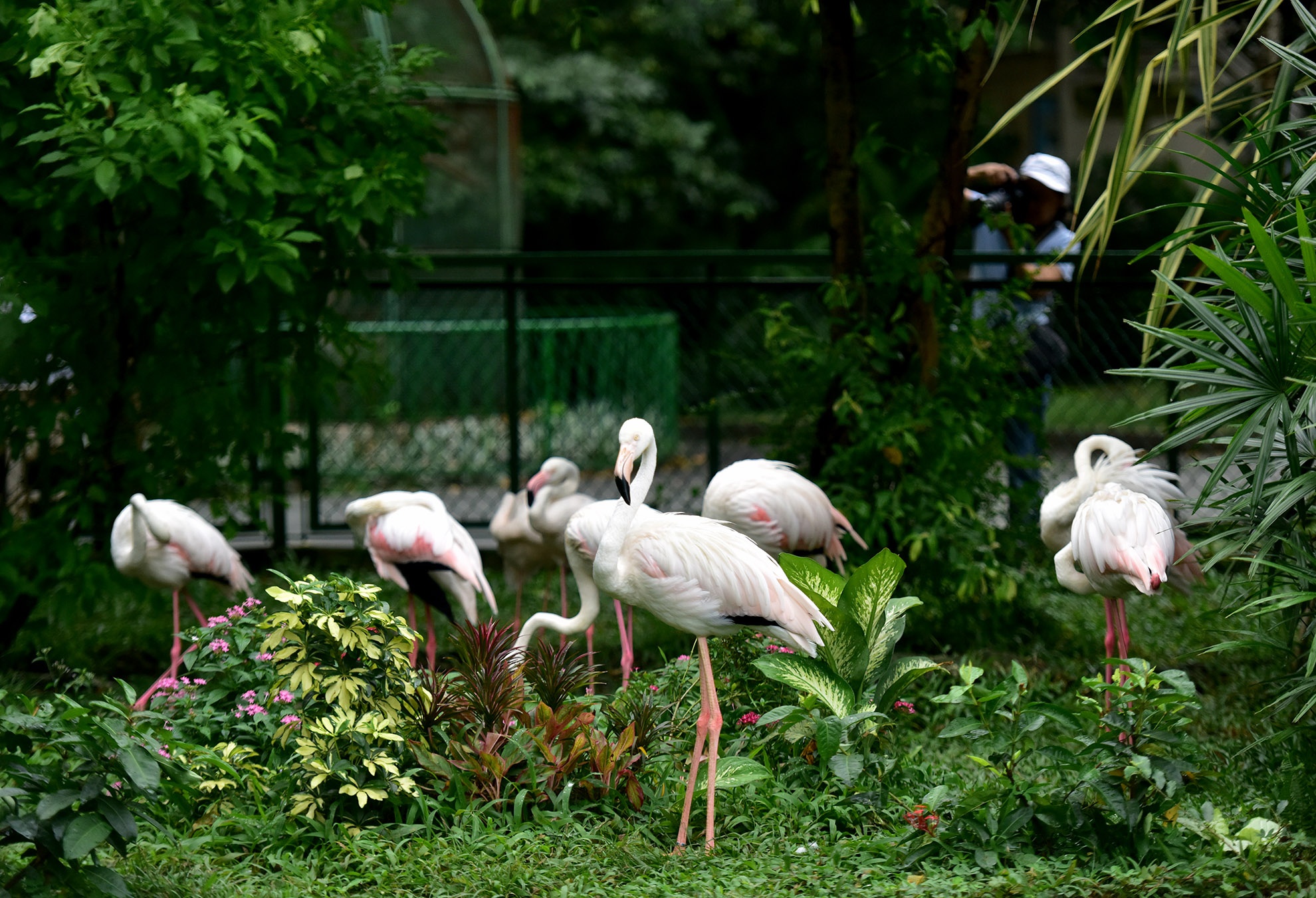 | Thảo Cầm Viên như một vườn thú mở. Nhiều loài động vật được sinh sống trong những không gian tự nhiên. Trong ảnh: Loài chim hồng hạc sống thành đàn trong khu vực không cần hàng rào. |