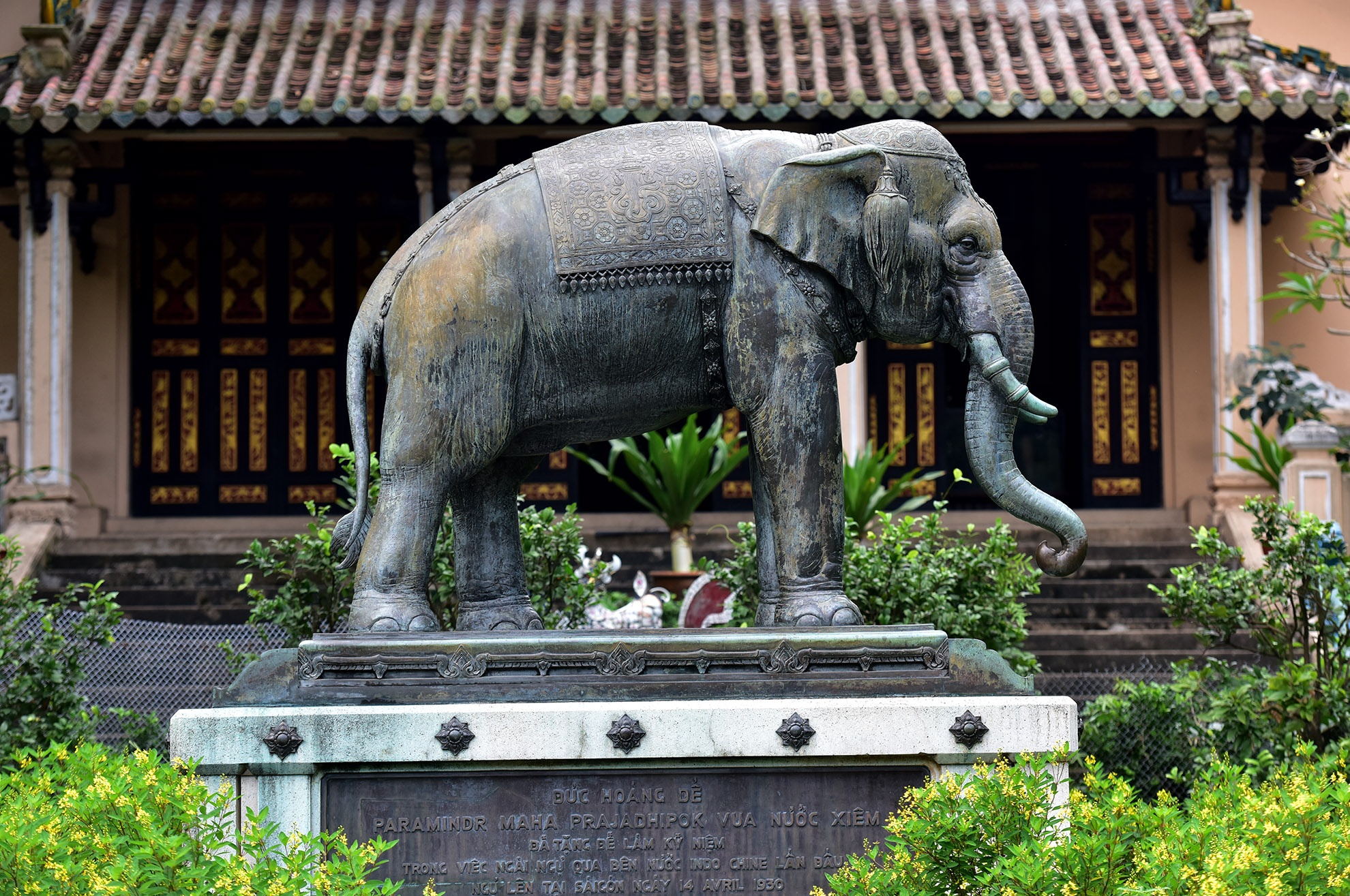 | Tượng voi được đúc bằng đồng đen nằm bên đền Hùng Vương do vua Xiêm - Paramindr Maha Pradjahipok tặng sau chuyến thăm Sài Gòn năm 1930. |