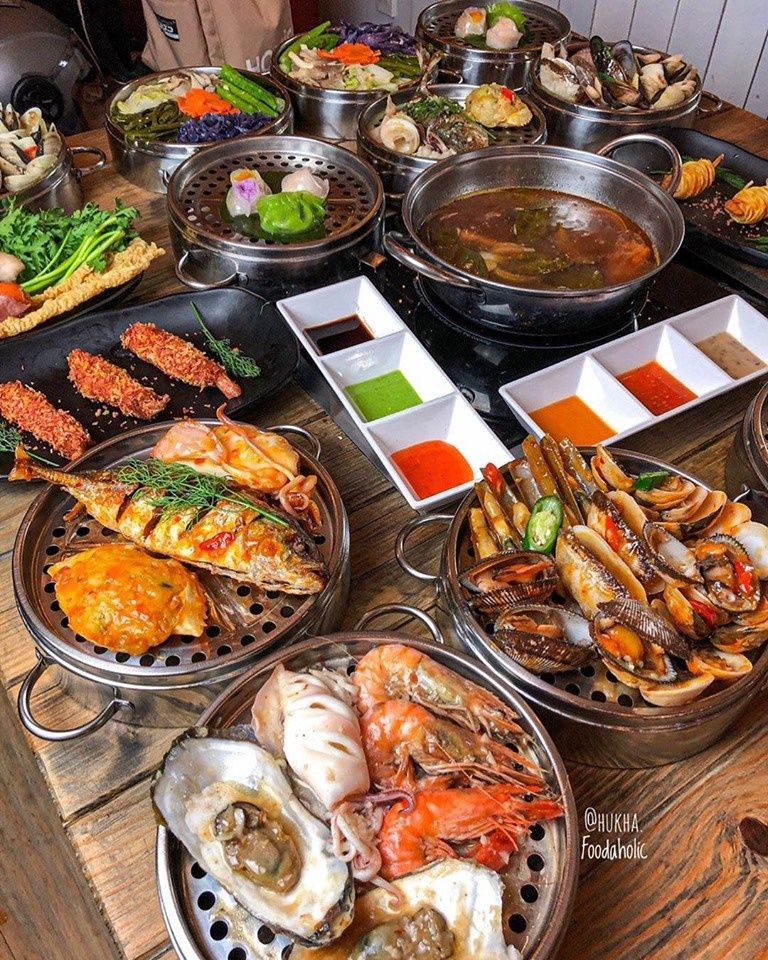 Ngoài ra, bạn có thể thỏa sức ăn tôm hùm Atlantic, vẹm xanh New Zealand, nghêu cầu vồng, hàu chóp chép, ốc móng tay tỏi ớt, chả cua Farci, sò dẹo ngũ sắc với tháp Atlantic Ocean hấp dẫn. Ảnh: Leosnak, Hukha.foodaholic. |