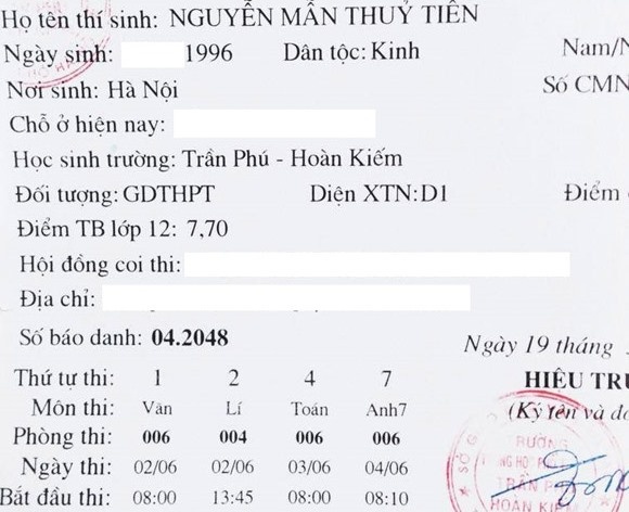 Theo thông tin được ghi trên tấm thẻ này, Mẫn Tiên có tên đầy đủ là Nguyễn Mẫn Thủy Tiên. Điểm trung bình học kỳ 2 của cô bạn này là 7,7. Năm nay là năm đầu tiên đổi mới về hình thức thi tốt nghiệp, theo đó, học sinh chỉ phải thi 4 môn, với 2 môn bắt buộc là Văn, Toán và thí sinh tự chọn 2 môn còn lại. Mẫn Tiên đã chọn cho mình Lý và Anh.