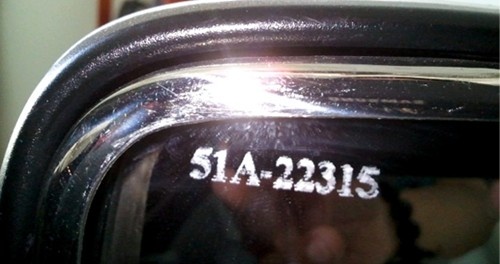 | Khắc bảng số lên kính chiếu hậu là cách hạn chế hiệu quả nạn trộm cắp loại kính này. |