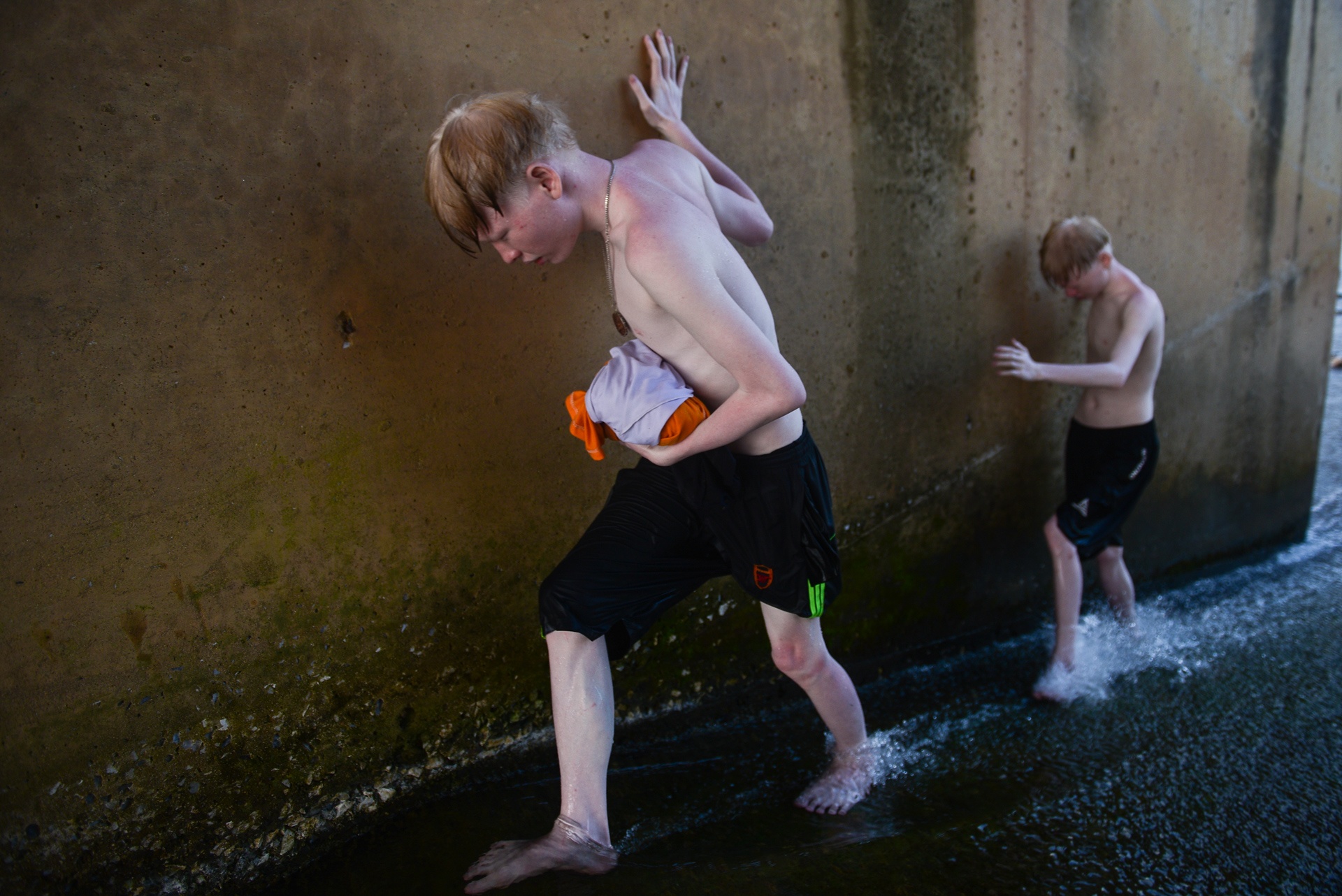 Hôm khác, Huy và Hùng dành thời gian đến đập thuỷ điện Đá Hàn, cách nhà 14 km để tắm. Từ khi biết đến đập này cách đây gần 1 năm, cả hai thường xuyên ra đây tắm, tập bơi.