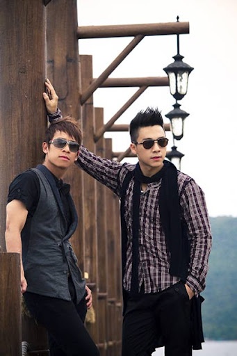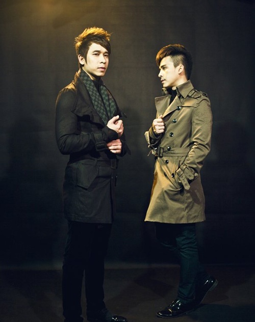 Áo vest tối màu ăn nhập với hình ảnh lịch lãm của hai thành viên nhóm nhạc.