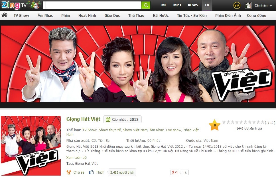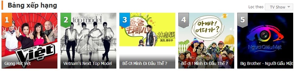 Giọng Hát Việt 2013 bất ngờ vươn lên vị trí quán quân BXH TV Show. |