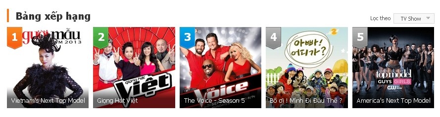 Vietnam’s Next Top Model liên tiếp giành quán quân trên BXH Zing TV. |