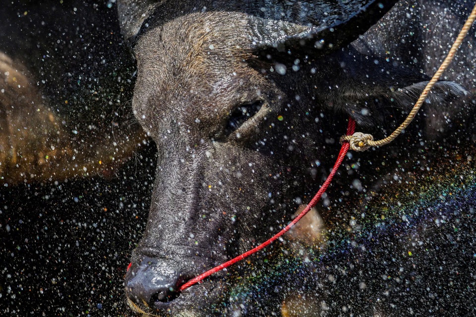 Một con trâu được tắm trước lễ hội đua trâu thường niên lần thứ 154 tại tỉnh Chonburi, Thái Lan, ngày 6/10. Ảnh: Reuters. |