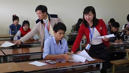 | Các thí sinh thi lại môn toán ở Đà Lạt. |