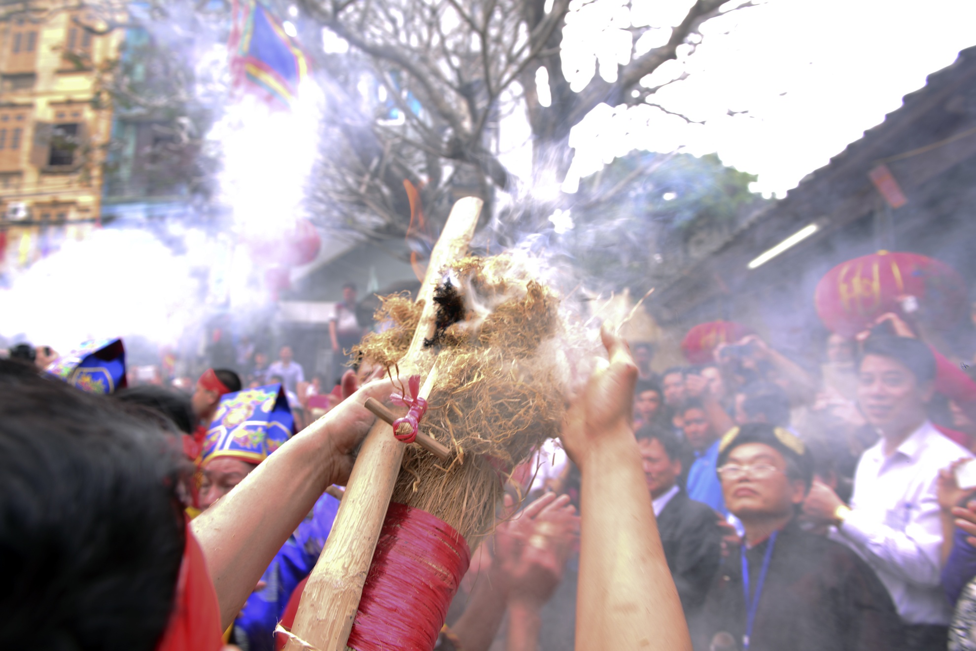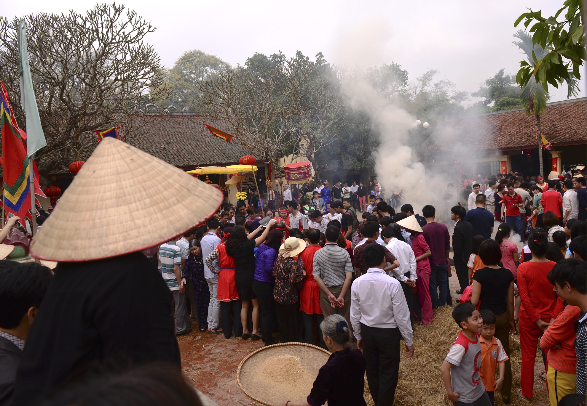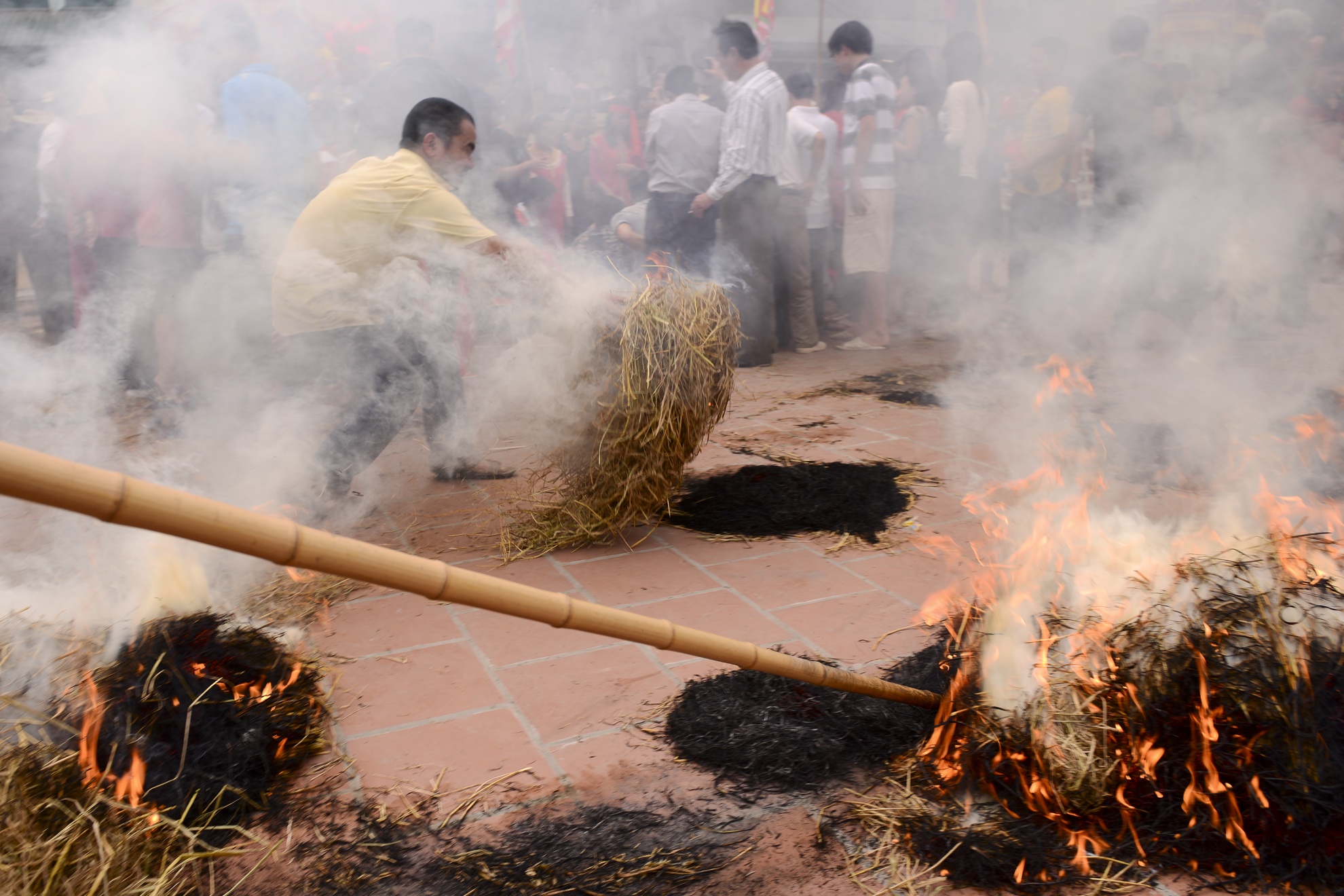 Sáng 26/2 (mùng 8 tháng giêng âm lịch), dân làng Thị Cấm (phường Xuân Phương, quận Nam Từ Liêm, Hà Nội) tổ chức lễ hội chạy thi, kéo lửa, thổi cơm truyền thống.