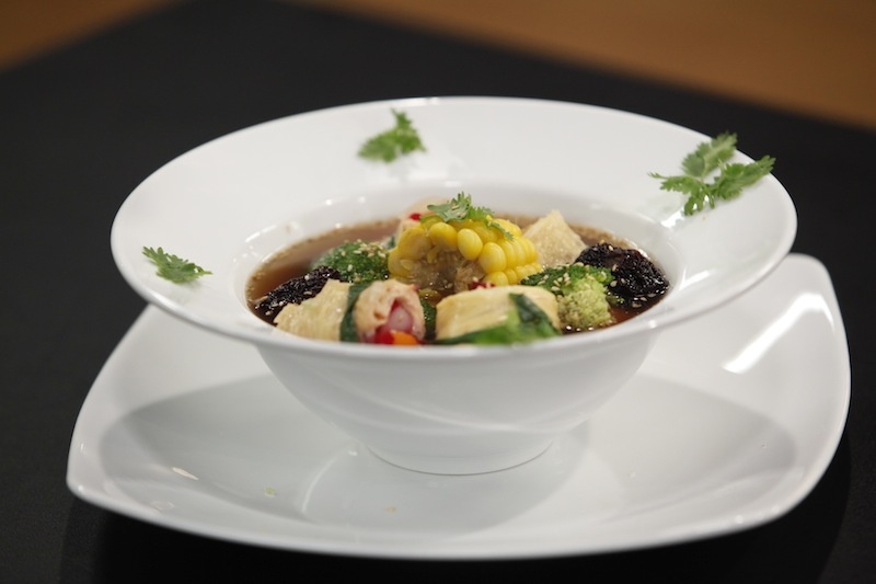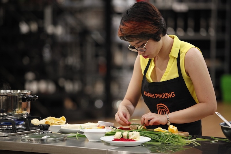 | Trước thử thách mang tính quyết định này, Khánh Phương đã chọn món canh rau củ. Giám khảo Luke Nguyễn rất thích thú với phần trang trí của đầu bếp 9X Khánh Phương: “Em cuốn đẹp lắm. Canh thơm lắm. Anh thấy canh này tinh tế, mùi vị cũng nhẹ nhàng. Khánh Phương còn trẻ mà kỹ năng và tiềm năng của em rất là cao. Em có một tương lai sáng trong ngành ẩm thực này”. |