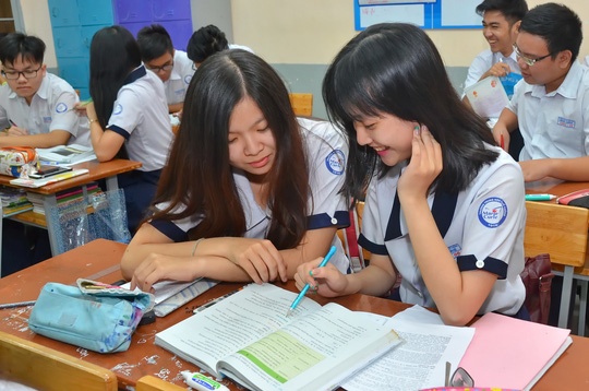 Học sinh lớp 12 Trường THPT Marie Curie (TP HCM) trong giờ ôn tập. Ảnh: Người Lao Động. |