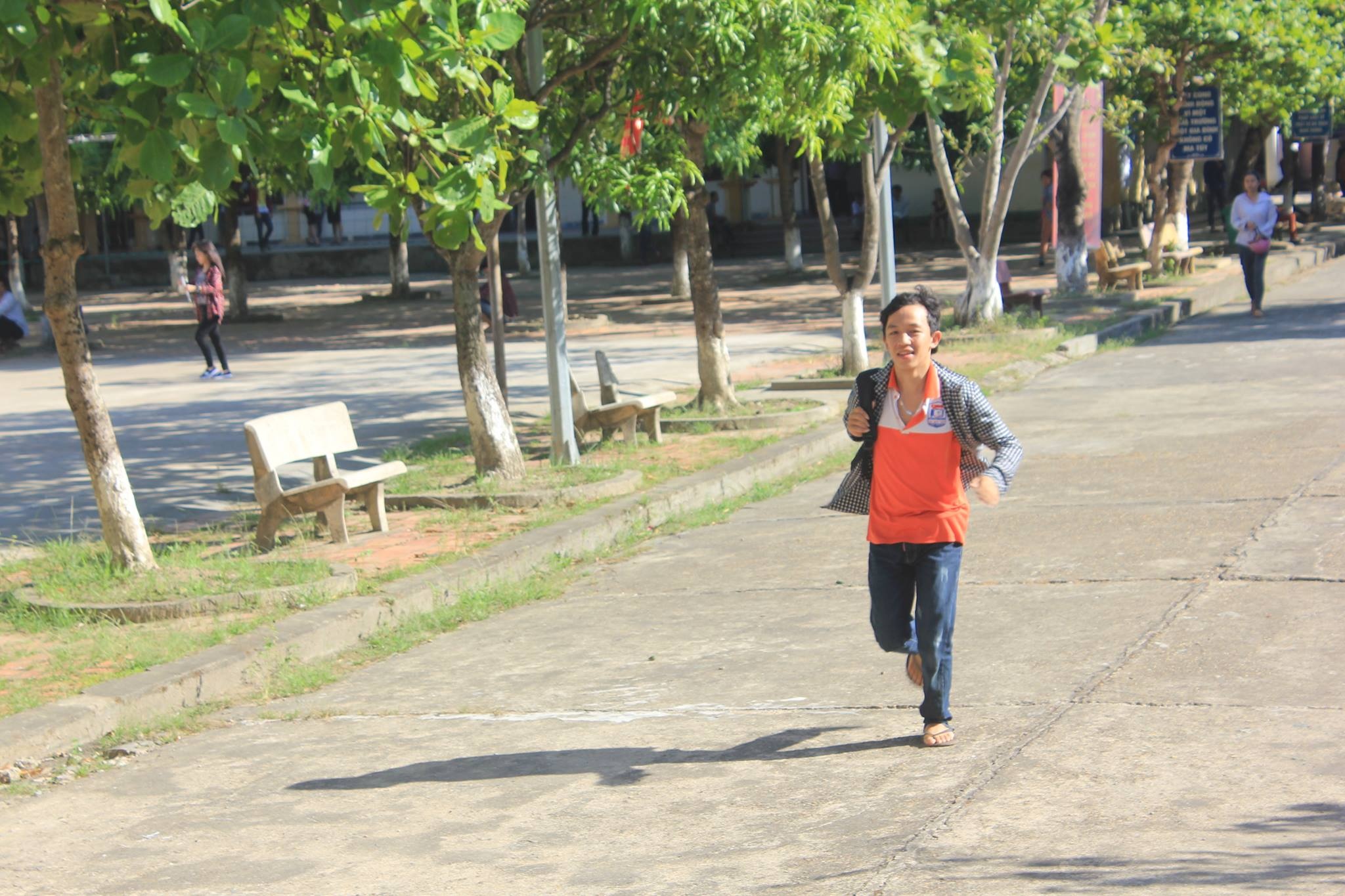 | Thí sinh đến muộn, vội chạy vào phòng thi. Ảnh: Phạm Hòa. |