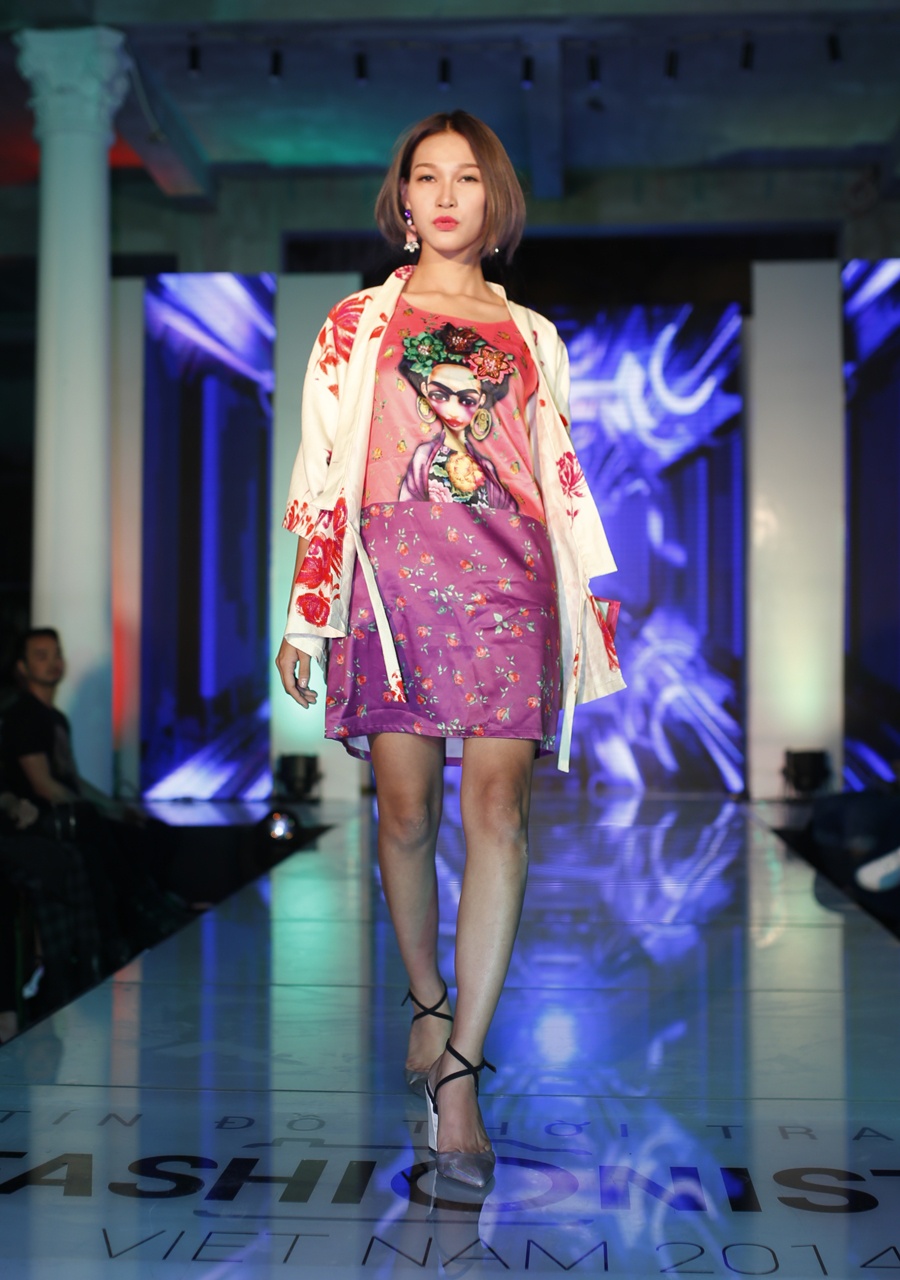 | Top 8 Fashionista Vietnam - Nhật Uyên đi vừa nhún nhảy, thể hiện nét tinh nghịch, đáng yêu, phù hợp với bộ cánh mà nữ tín đồ trình diễn. Cô cũng là người sở hữu lượng fan đông và đoạt luôn giải Thí sinh được quan tâm nhiều nhất trên Zalo. |