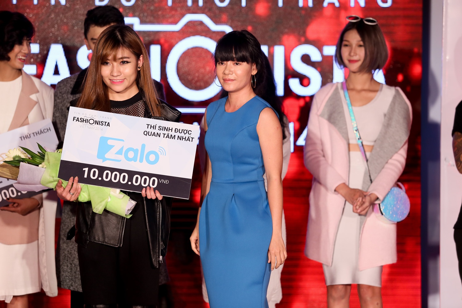 | Nhật Uyên - top10 Fashionista Vietnam nhận được phần thưởng 10 triệu đồng từ nhà tài trợ Zalo. Cô là thí sinh có lượng người theo dõi cao nhất trên ứng dụng Zalo. |