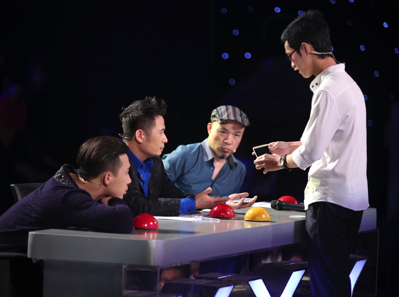 Màn ảo thuật kết hợp cùng công nghệ, nhanh gọn mà hiệu quả khi thể hiện trên điện thoại di động đúng quân bài giám khảo Trấn Thành chọn, thí sinh 19 tuổi Duy Khang tiếp tục đi vào vòng trong. |