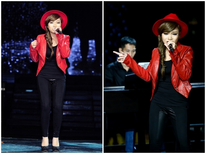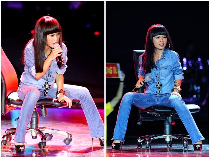 Đêm qua, cô gái của đội Đàm Vĩnh Hưng là Song Tú có màn trình diễn cuốn hút. Mặc dù sở hữu ngoại hình không cao ráo nhưng bù lại cô gái cá tính này biết chọn lựa trang phục hợp với vóc dáng và sở thích của mình. Trong liveshow chung kết đầu tiên, Song Tú ghi điểm với trang phục cây denim hợp xu hướng. Mái tóc để suôn với phần mái ngang cá tính.