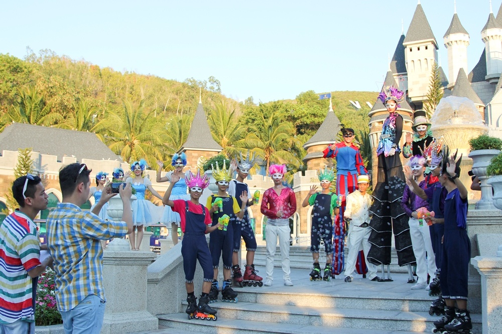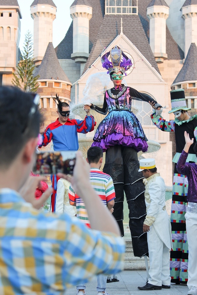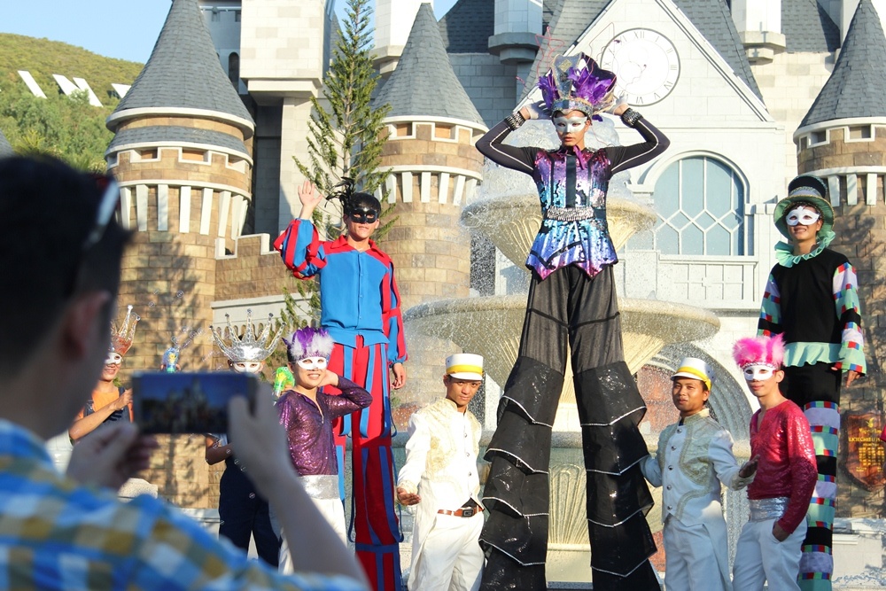| Các chàng trai, cô gái mùa 6 hoá thân với hình tượng những chú hề, trình diễn tại lễ hội. |