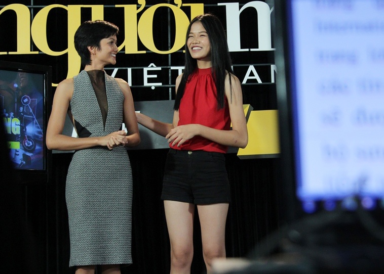 | H'Hen Niê hợp tác ăn ý cùng Hồng Vân, bởi cô rất quý mến em út ngôi nhà chung. Ở thử thách này, cô gái dân tộc Ê-Đê có phần nổi trội hơn đàn em. Cô được khen tác phong gần giống MC chuyên nghiệp. Trong khi đó, nữ thí sinh 18 tuổi chỉ biết cười trừ vì để trôi mất lượt dẫn của mình. |