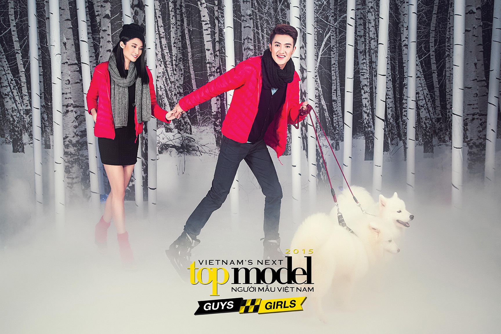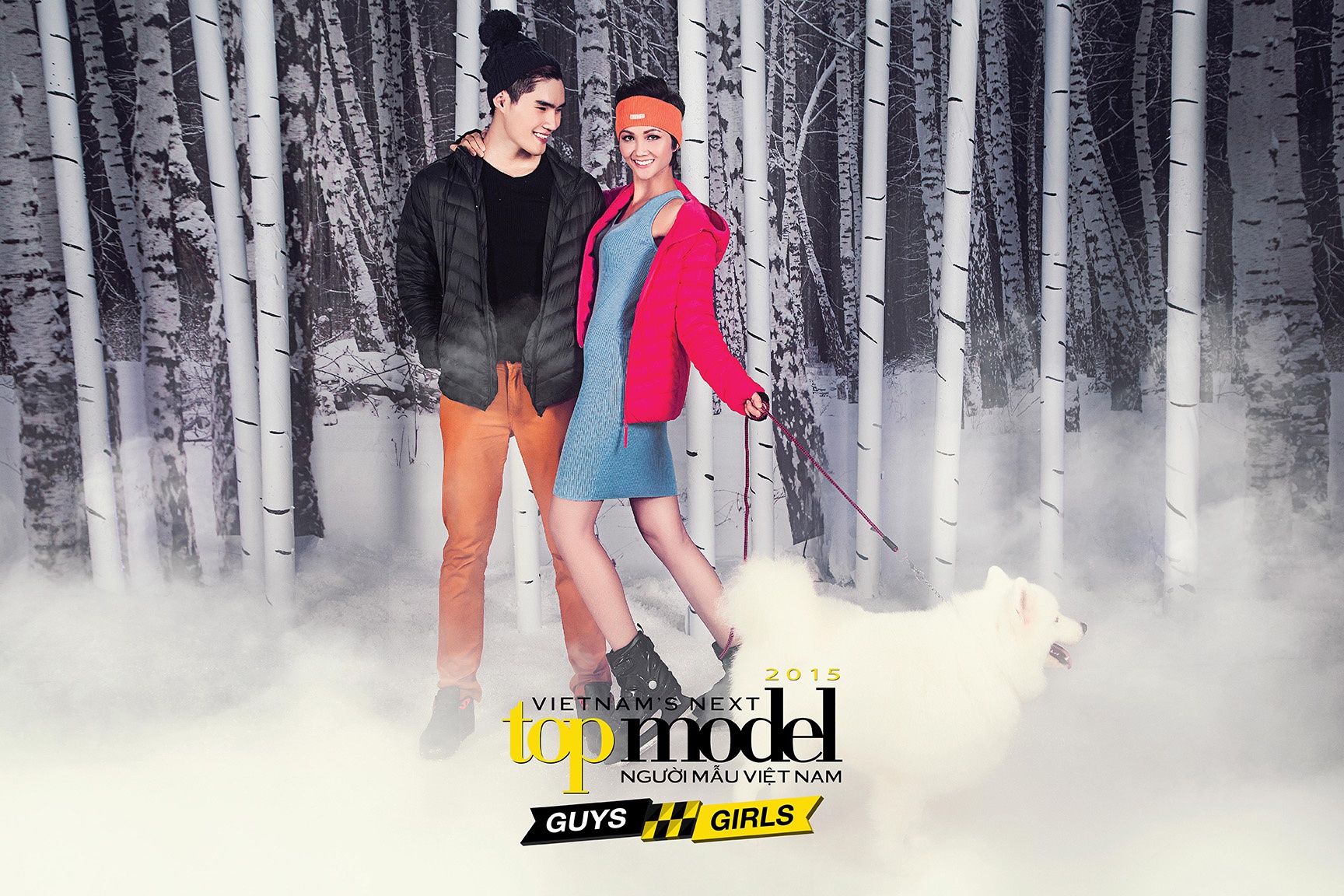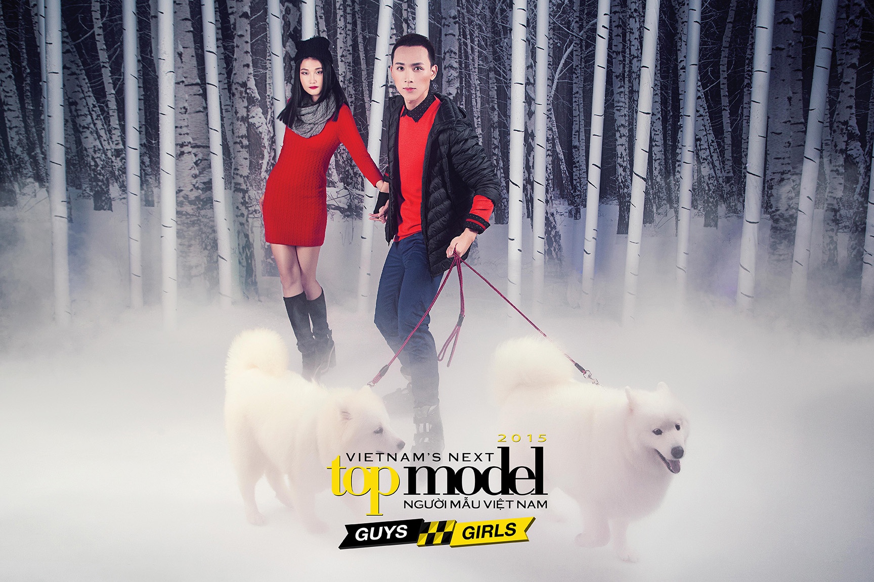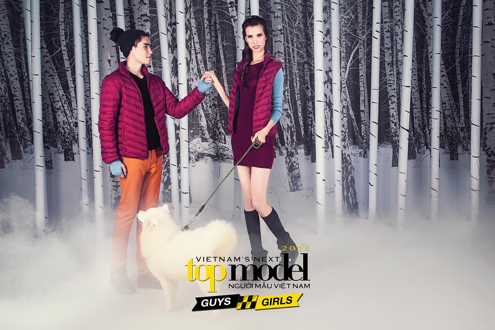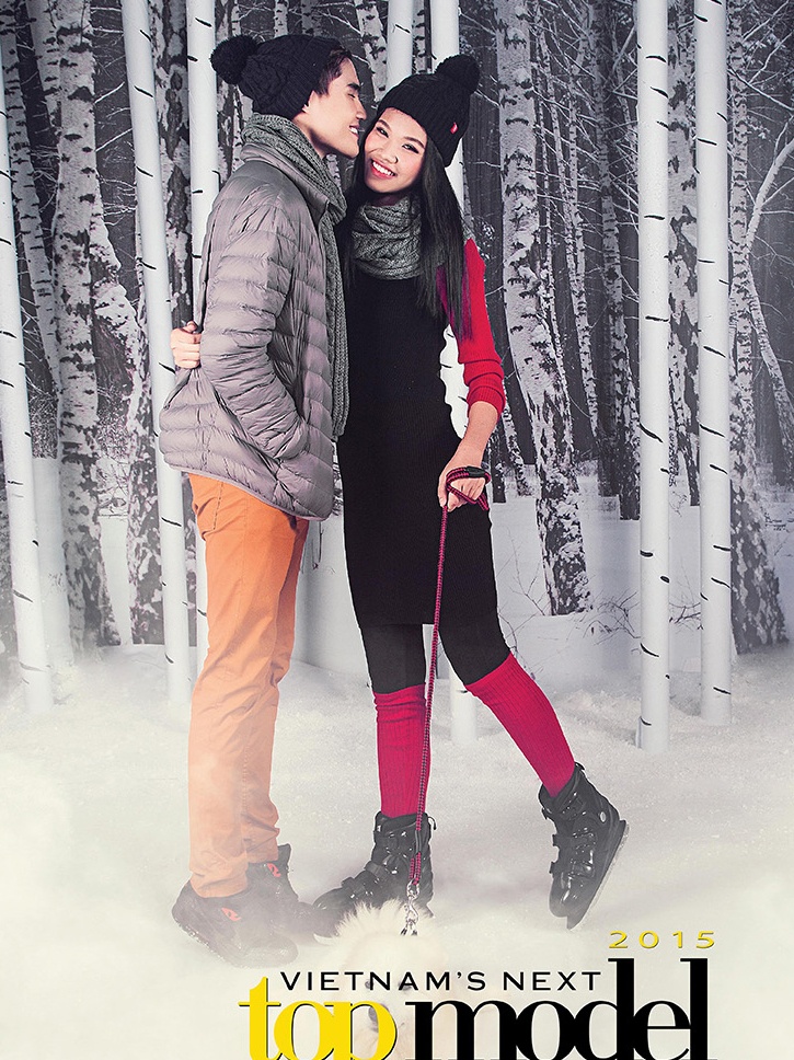 | Buổi chụp của Đinh Đức Thành và Kha Mỹ Vân không mấy suôn sẻ vì liên tục bị "bạn diễn" kéo đi. Anh bị giám khảo nhắc nhở về gương mặt gượng gạo. |