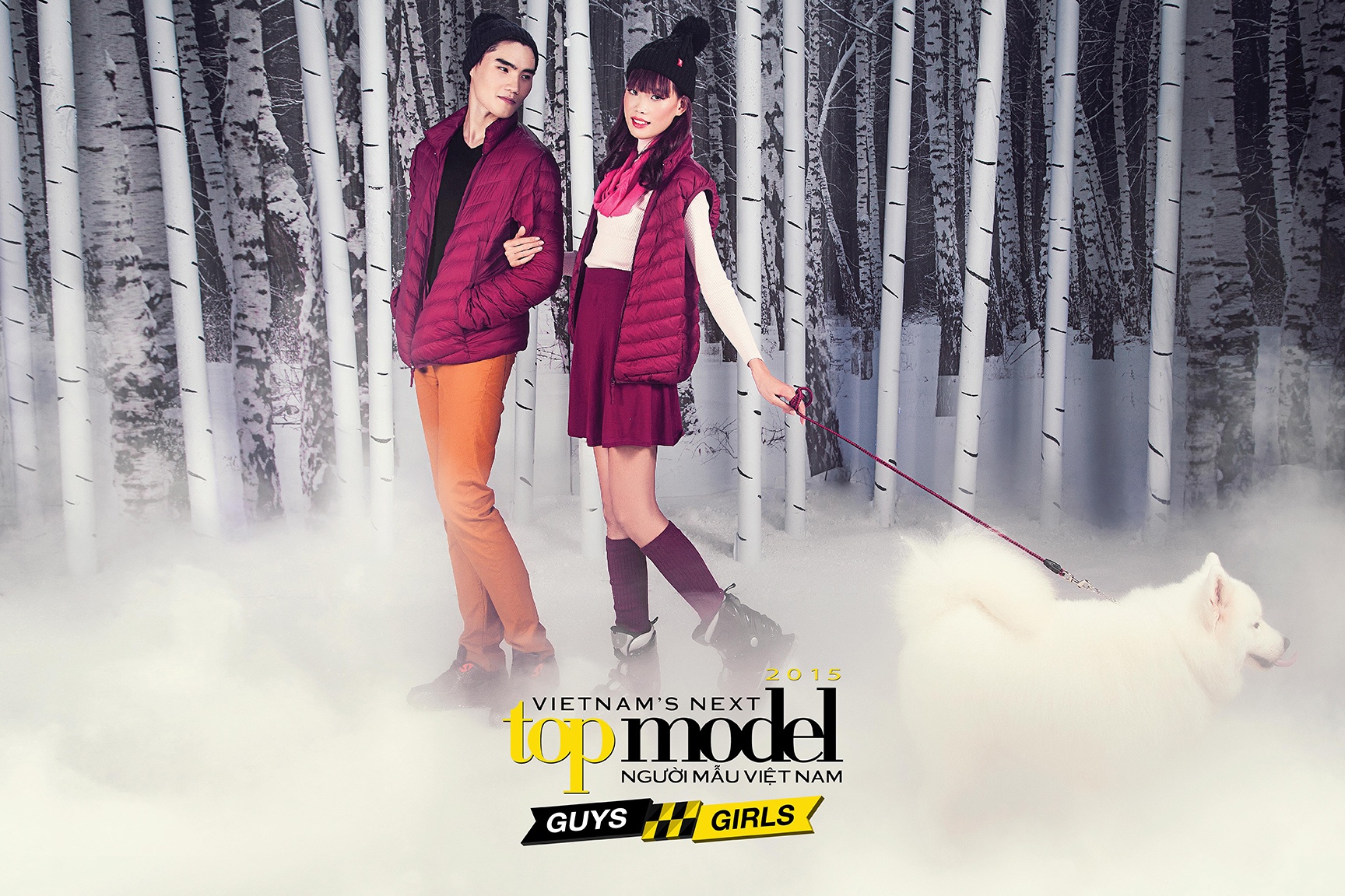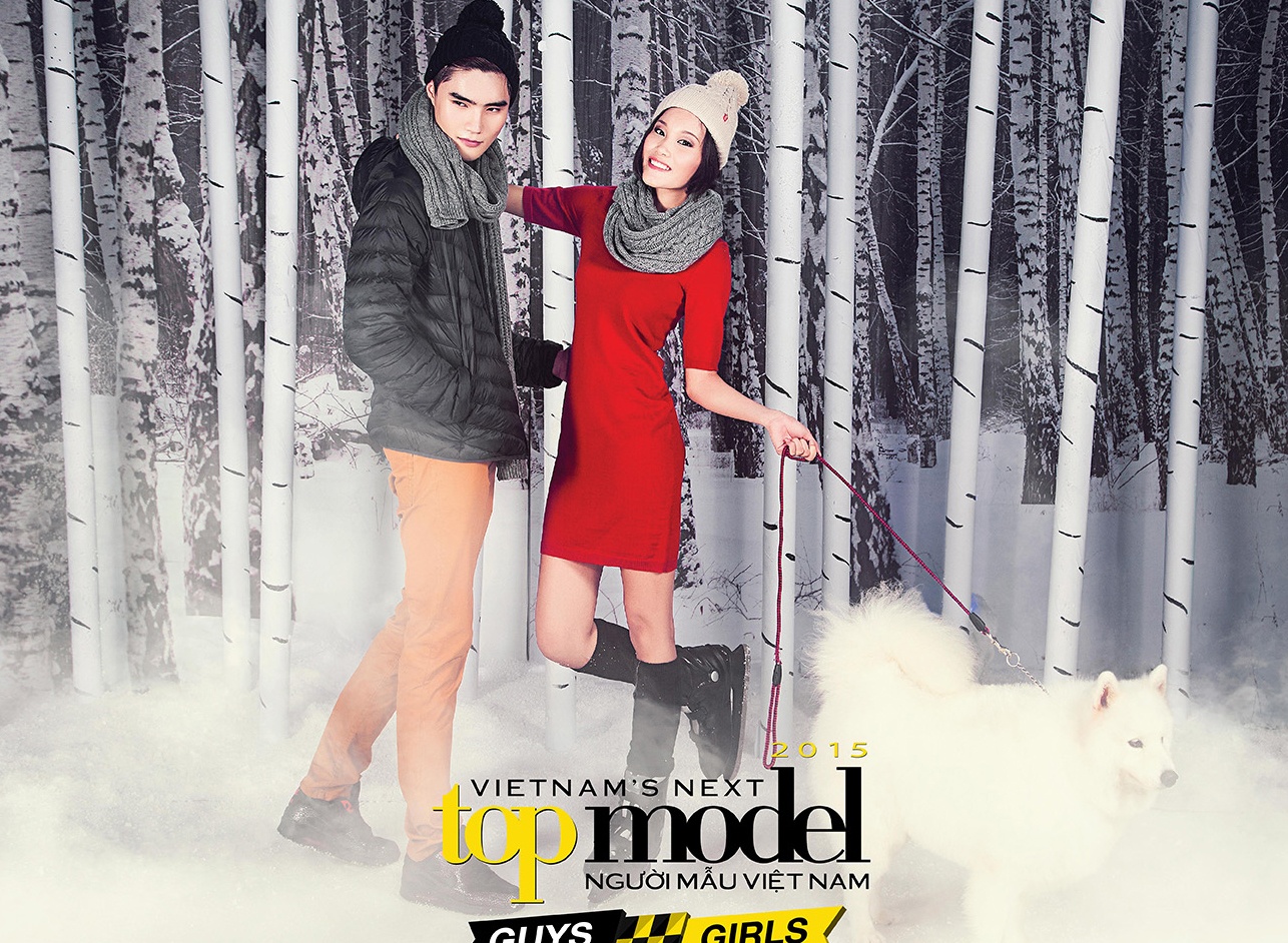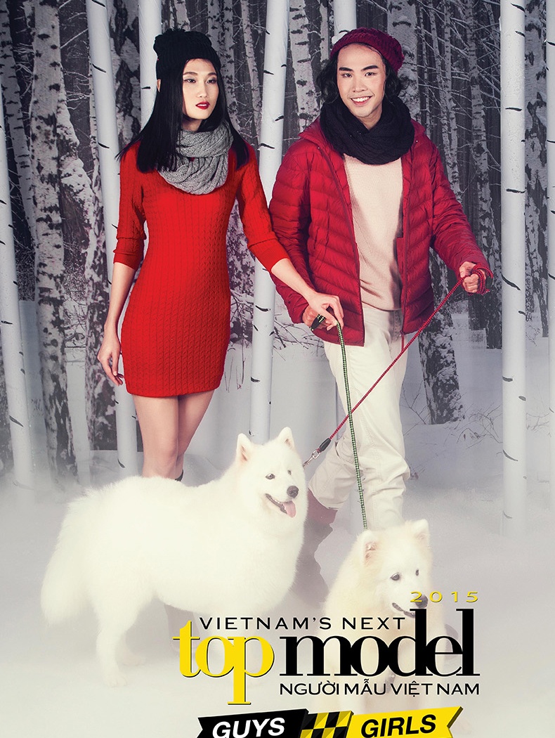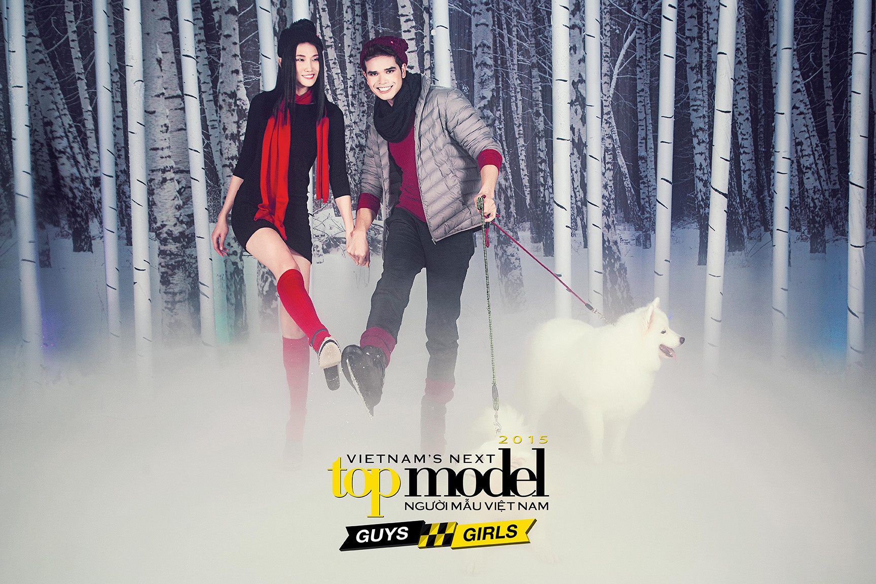 | Buổi chụp của Đinh Đức Thành và Kha Mỹ Vân không mấy suôn sẻ vì liên tục bị "bạn diễn" kéo đi. Anh bị giám khảo nhắc nhở về gương mặt gượng gạo. |