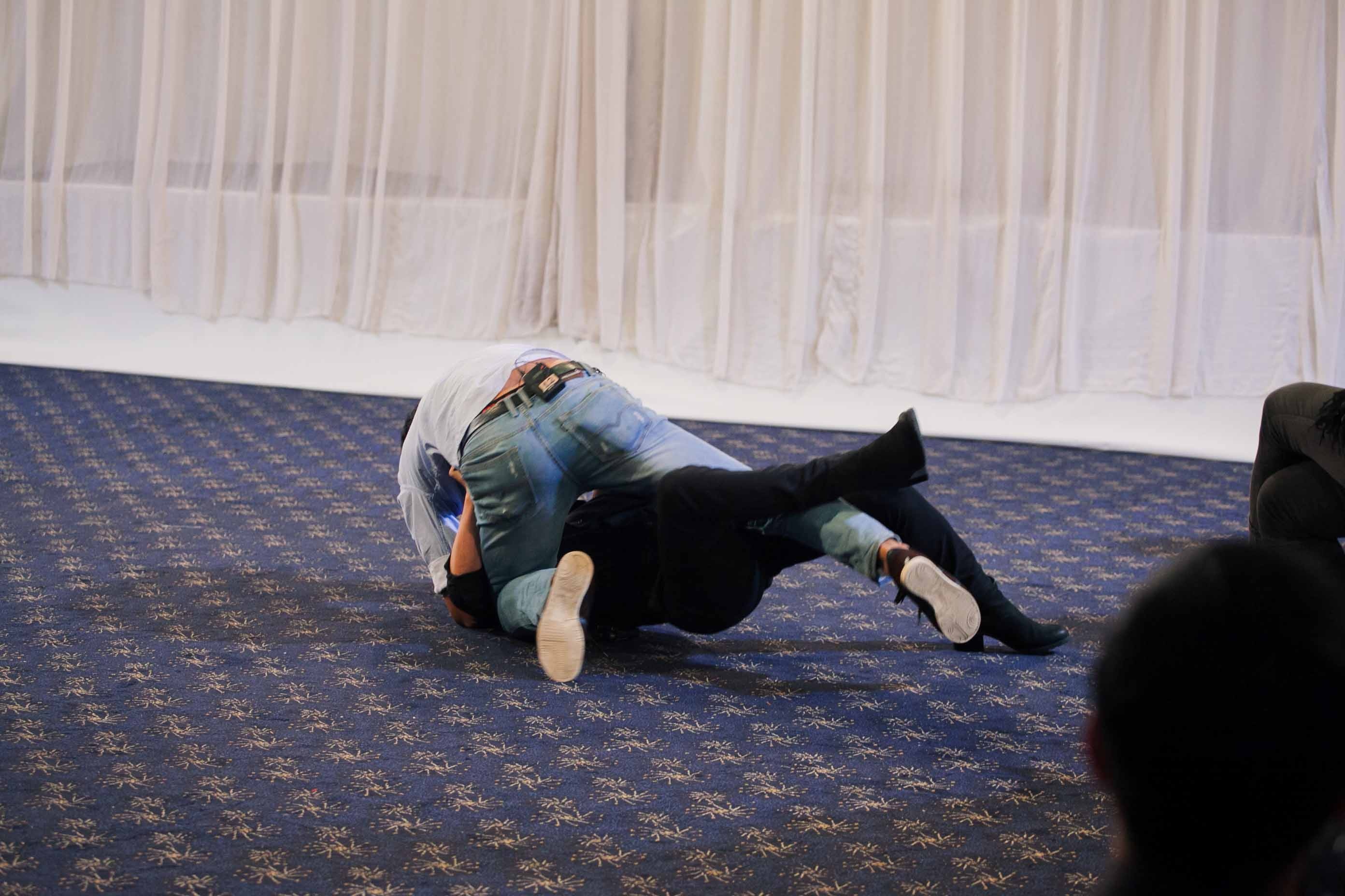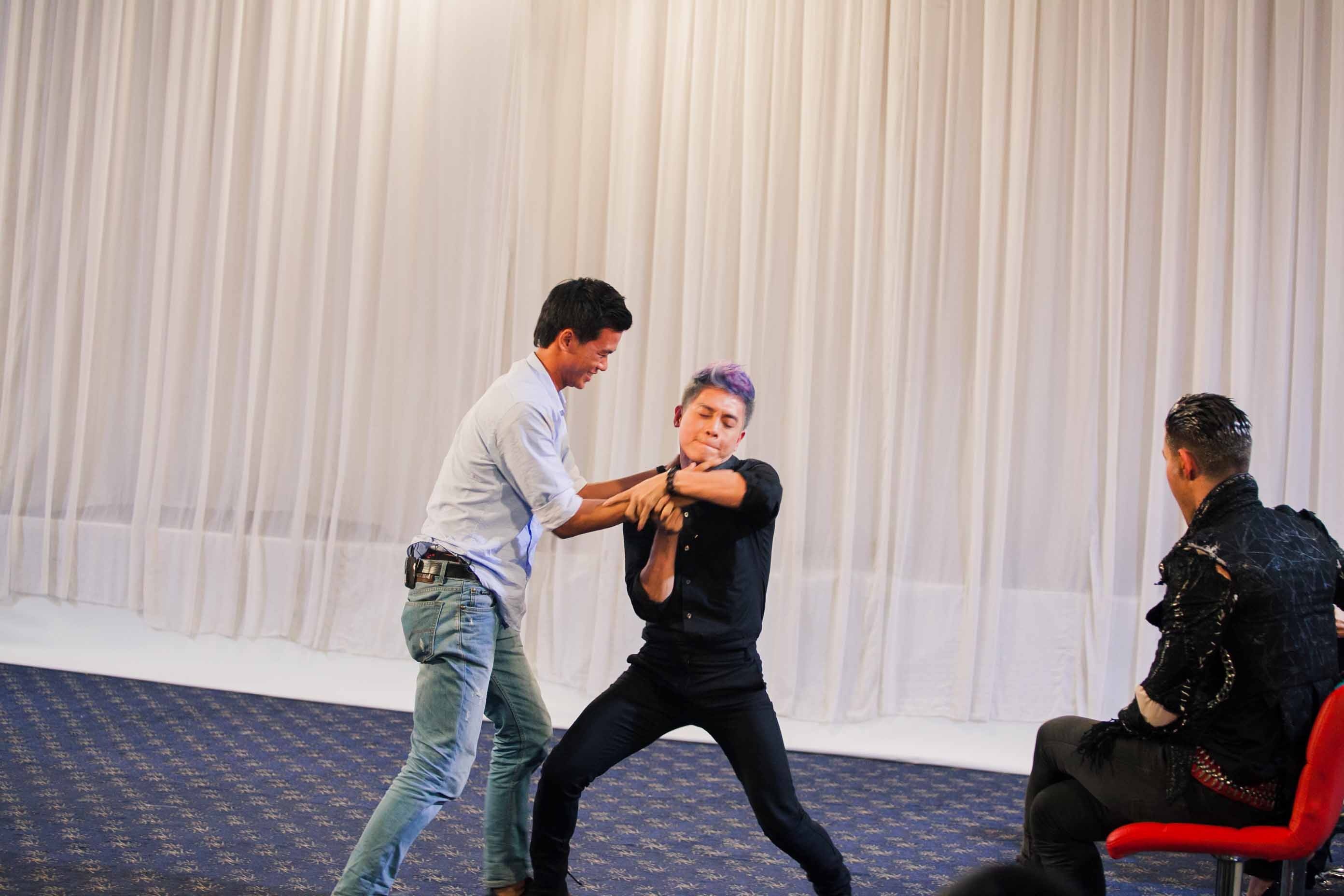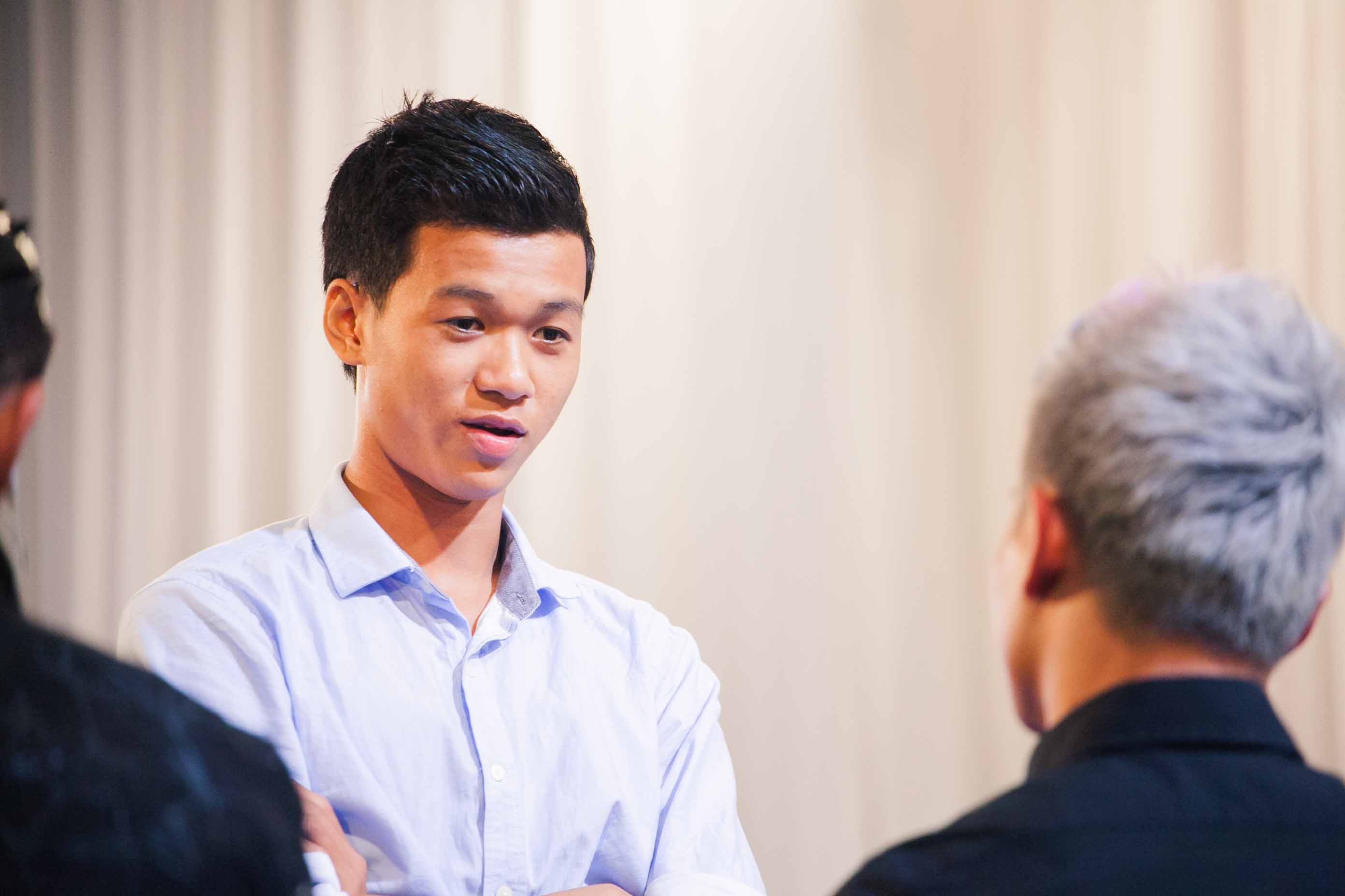 Với tính cách thích sự an toàn, thí sinh khá rụt rè với tình huống mà giám khảo đưa ra cho mình. Anh cho rằng, làm như thế sẽ thất kính với BGK. Nhận được sự đồng tình của 3 vị giám khảo còn lại, nam thí sinh quyết định ''ra tay'' đối với giám khảo mình yêu quý là Nam Trung. Phút thử thách diễn ra nhanh chóng, chàng trai khỏe mạnh khiến BGK rời khỏi ghế ngồi, cả hai có cuộc tỉ thí nhanh mà lợi thế nghiêng về chàng sinh viên. Nhờ lợi thế vóc người cao lớn, trẻ khỏe nên thí sinh nhanh chóng ghì sát Nam Trung buộc giám khảo phải ra sức ''trả đòn''.