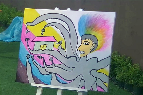 | Bức tranh "hồn nhiên" đạt giải của em út Ngọc Trí. |