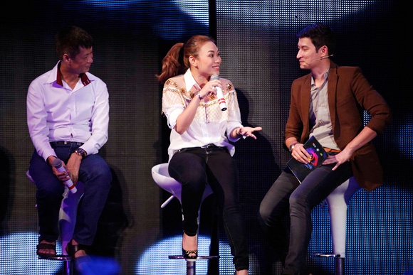 | Mỹ Tâm giao lưu và hát tặng 5 thành viên. |