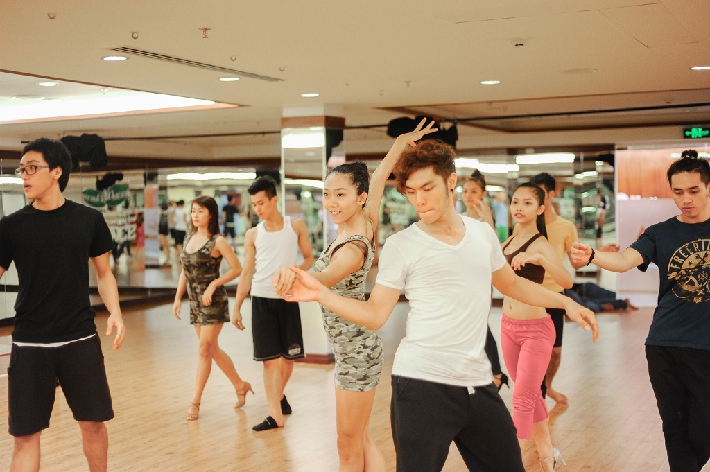 Vượt qua cú sốc này, Minh Tú - Đình Hải vẫn chăm chỉ tập luyện cùng mọi người. |