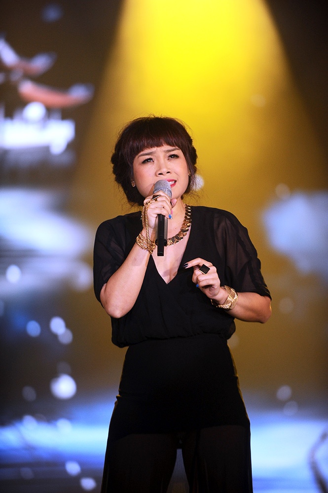| Ngoài phần trình diễn của các thí sinh, đêm chung kết Sao Mai toàn quốc 2015 còn có sự xuất hiện của các ca sĩ khách mời như Ngọc Anh, Hoàng Hải, Ngọc Khuê, Hồng Vi, Dương Hoàng Yến. Trong ảnh, "chuồn chuồn ớt" Ngọc Khuê trình diễn ca khúc Giấc mơ dai dẳng. |