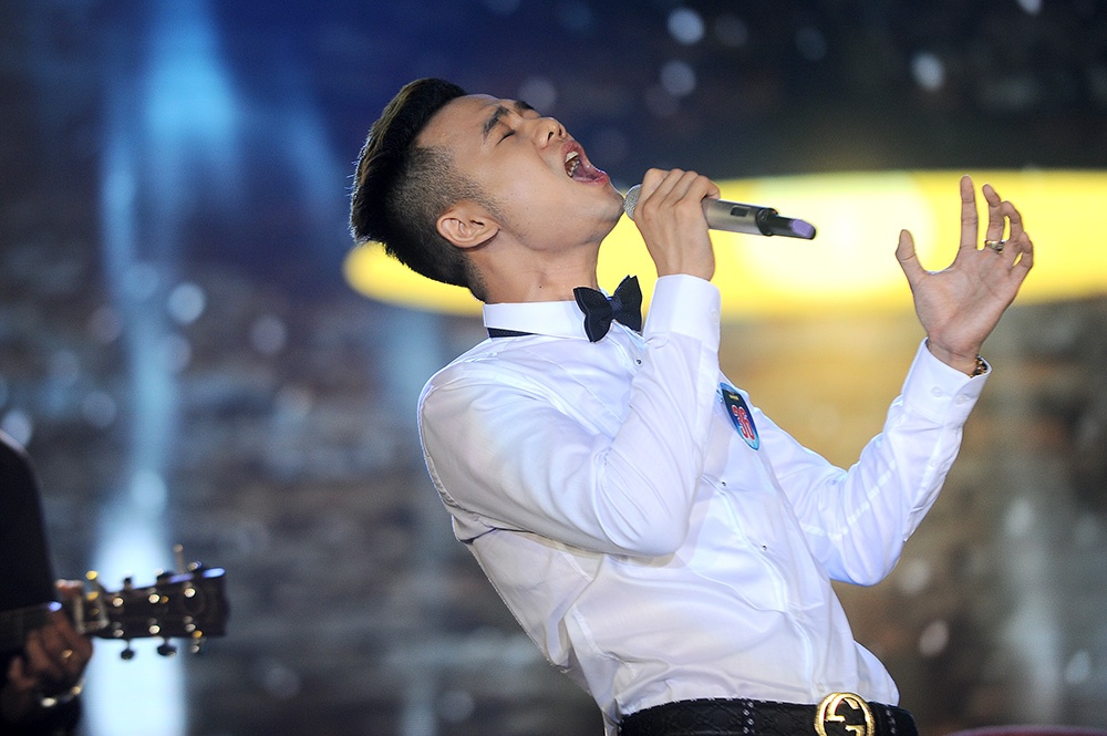 | Đồng giải Nhì với Trần Thị Bích Ngọc là Nguyễn Tiến Hưng. Nam thí sinh mang số báo danh 09 có giọng hát hùng tráng, hào sảng nhưng cũng rất trinh tế. Trong đêm chung kết tối 15/8, anh trình diễn ca khúc Chào sông Mã anh hùng. |