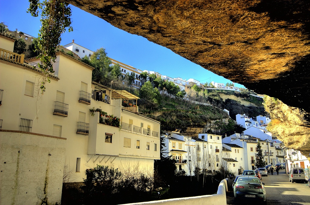 Setenil de las Bodegas ở Tây Ban Nha được xem là một trong những thị trấn không bình thường trên thế giới, khi có một số lượng lớn nhà hàng, văn phòng làm việc và nhà ở được xây dựng bên trong những tảng đá nhô ra từ vách đá xói mòn bởi con sông Rio Trejo.