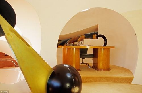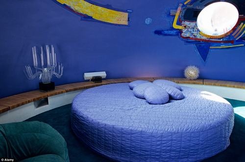 Các phòng tập trung vào chủ đề hình tròn như thiết kế bên ngoài của nó bao gồm những chiếc ghế, giường và cửa sổ đều hình tròn.