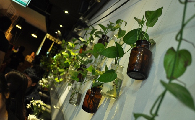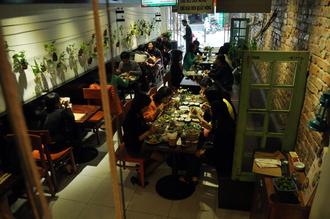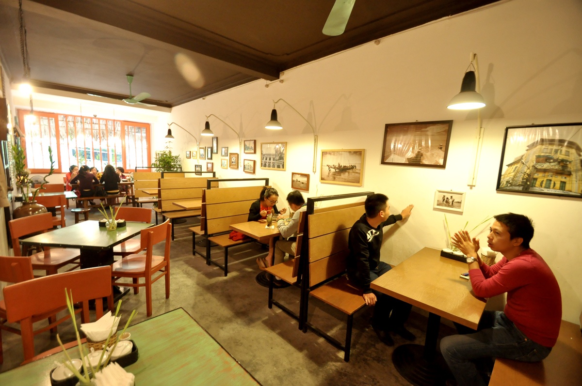 Lịch sự với nội thất gỗ, đèn vàng ấm áp, quán có 2 tầng là 2 không gian khác biệt. Tầng 1 khiến bạn như lạc vào một khu chợ Hải Phòng với tường gạch thô, đường dây điện và dãy biển treo tên món ăn như: Bánh đa cua, bún cá thập cẩm, nem vuông cua bể, bánh bèo Hải Phòng chính hiệu… Tầng 2 sáng, ấm áp nhưng hoài cổ hơn với hình ảnh về phố phường, cuộc sống Hải Phòng thời xưa cũ, những khung cửa cũ bạc màu, hay cách sắp đặt bàn ghế khiến thực khách có cảm giác như trên chuyến tàu hỏa về với thành phố biển.