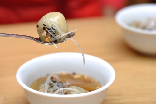 Trời Hà Nội bắt đầu chuyển đông. Thời điểm này khách đến quán, đặc biệt là các chị em còn rất thích thú với thực đơn ăn vặt ấm nóng kiểu Hải Phòng. Chẳng hạn như chè sủi dìn - món tương tự bánh trôi tàu song viên bánh nặn rất “mi nhon”, dễ thưởng thức mà ngon miệng hơn với nhân làm từ vừng đen, lạc rang và dừa nạo, được nấu trong nước gừng và đường mía mật. Hay món chè đỗ đen cũng được nấu đặc sánh nhưng ngọt dịu thôi để ăn kèm quẩy giòn. Hoặc món tào phớ kết hợp nước gừng ngọt ấm, dây mùi; món bánh bèo Hải phòng gói lá chuối rất độc đáo khi ăn cùng với chả viên và nước chấm nấu từ xương...