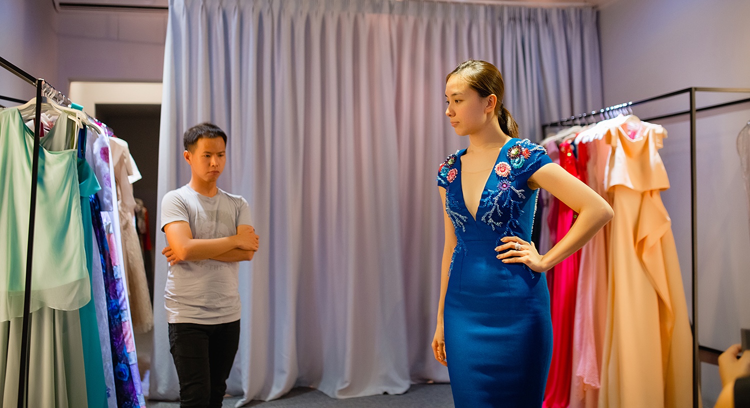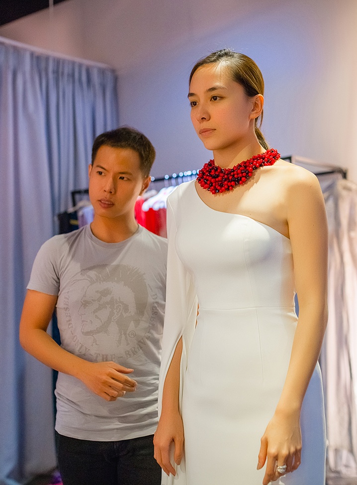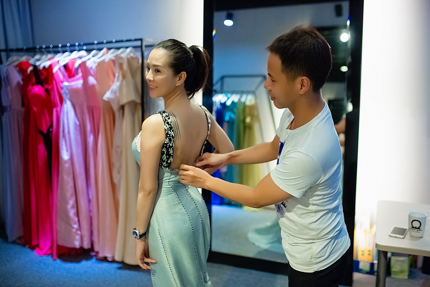 | Trong ảnh, Thiên Lý được nhà thiết kế thân thiết tận tình tư vấn cách chọn trang phục cũng như hỗ trợ ướm váy dạ hội. Trong show của Vincent Đoàn, thuộc Tuần lễ thời trang quốc tế Việt Nam, bà mẹ hai con sẽ góp mặt với tư cách khách mời danh dự. |